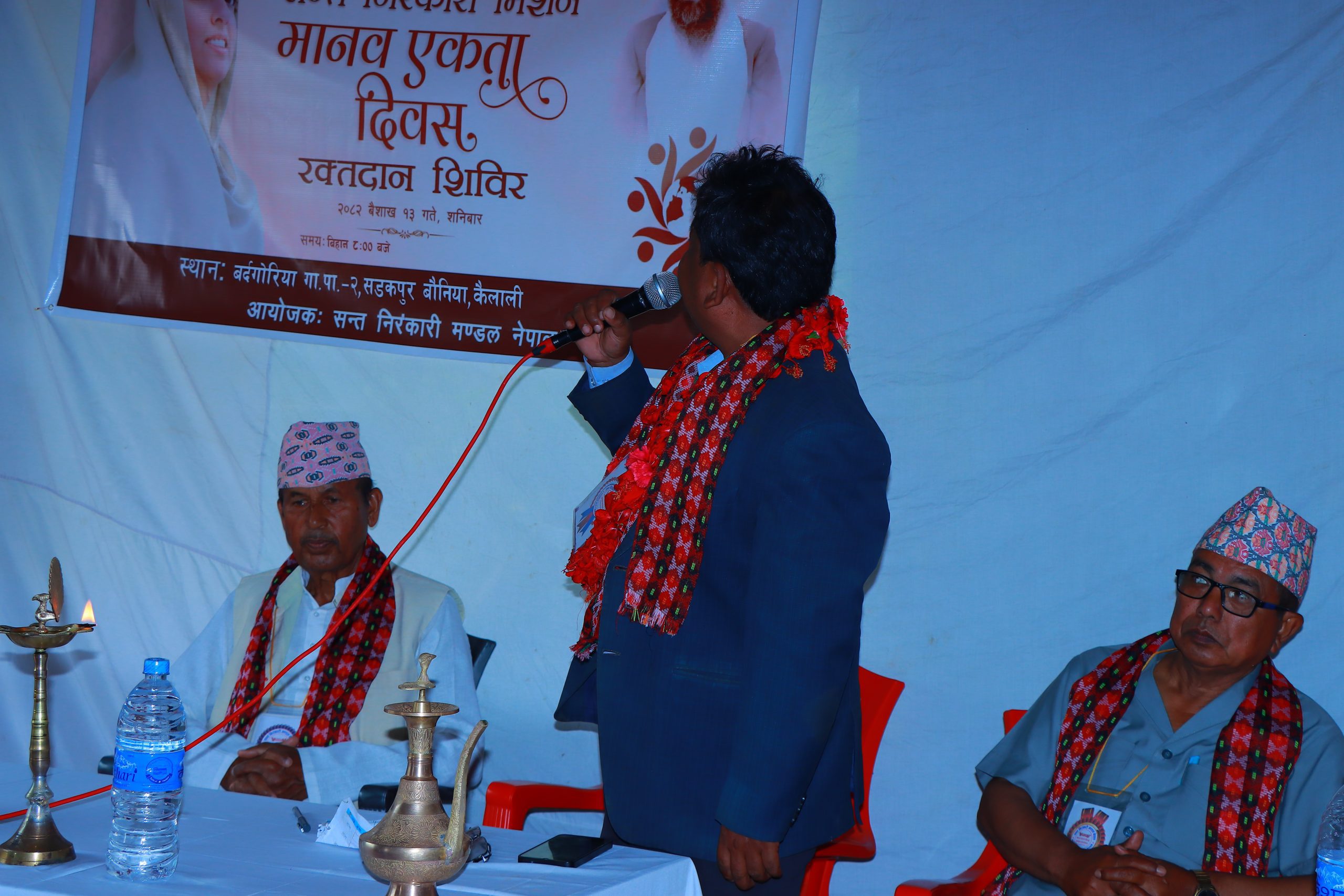 सन्त निरंकारी मण्डल विश्वमै सबैभन्दा धेरै रक्तदान गर्ने संस्थाको रुपमा परिचित छ । सडकपुर बौनियाँ शाखाका ब्रान्चमुखी विजय सिंह कुँवरको अध्यक्षता तथा पूर्व भूमि व्यवस्था कृषि तथा सहकारी मन्त्री तथा कैलाली क्षेत्र नम्बर २ (ख) का सांसद रामेश्वर चौधरीको प्रमुख आतिथ्यतामा कार्यक्रम भएको हो ।