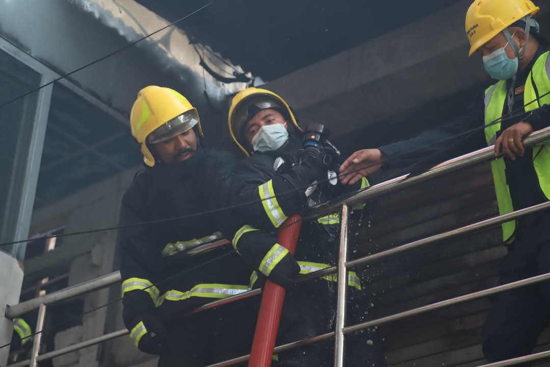 काठमाडौं। चन्द्रागिरि न.पा. ११ सतुङ्गलस्थित कपडा गोदाममा भएको आगलागी निभाउने क्रममा नेपाल प्रहरी, नेपाली सेना, सशस्त्र प्रहरी बल, नेपाल तथा स्थानीय निकायहरूले सामुहिक प्रयासमा आगो निभाएका थिए।