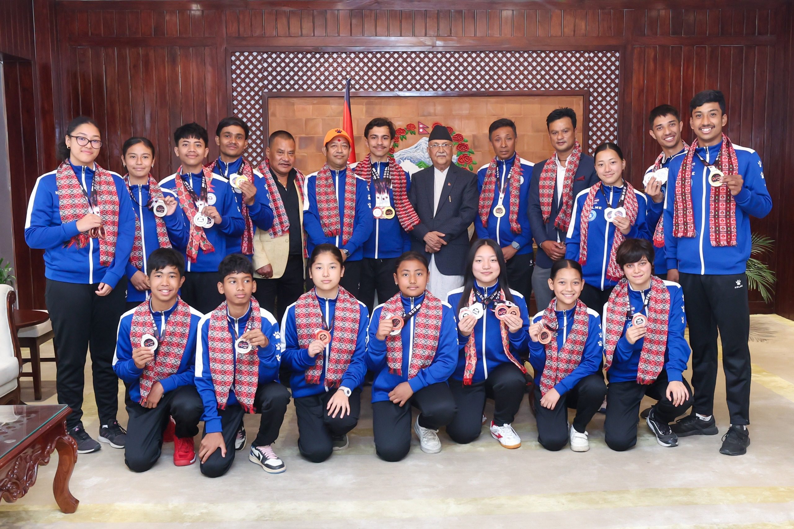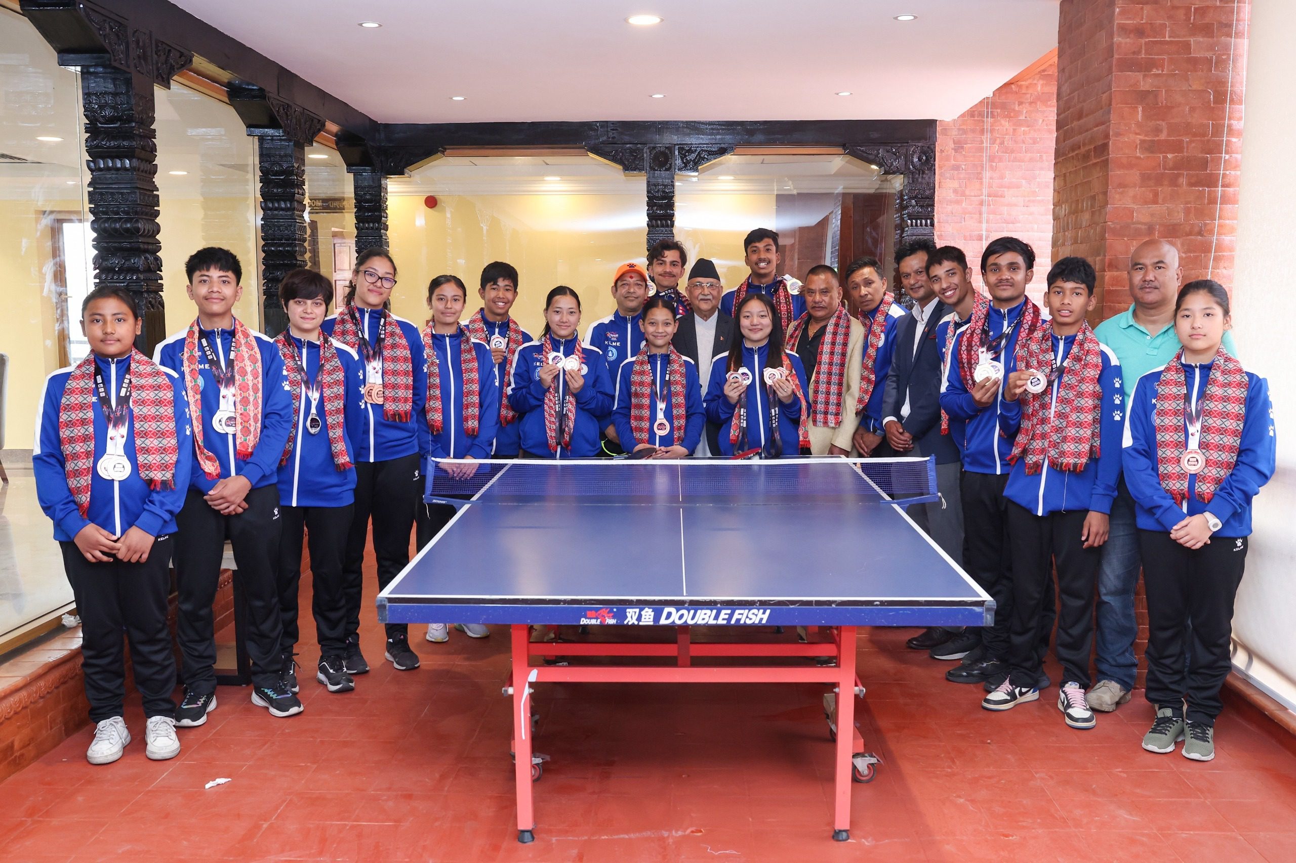 काठमाडौँ । प्रधानमन्त्री केपी शर्मा ओलीले ‘दक्षिण एसियाली युुथ टेबल टेनिस प्रतियोगिता’मा पदक विजेता खेलाडीलाई आज बधाई दिएका छन्।प्रधानमन्त्री निवास, बालुवाटारमा आयोजित कार्यक्रममा प्रधानमन्त्री ओलीले भविष्यका आशालाग्दा युवा खेलाडीलाई बधाई दिँदै उच्च मनोबलका साथ मेहनत गरेर विश्व प्रतिस्पार्धामा पनि विजेता बन्ने शुुभकामना दिए।