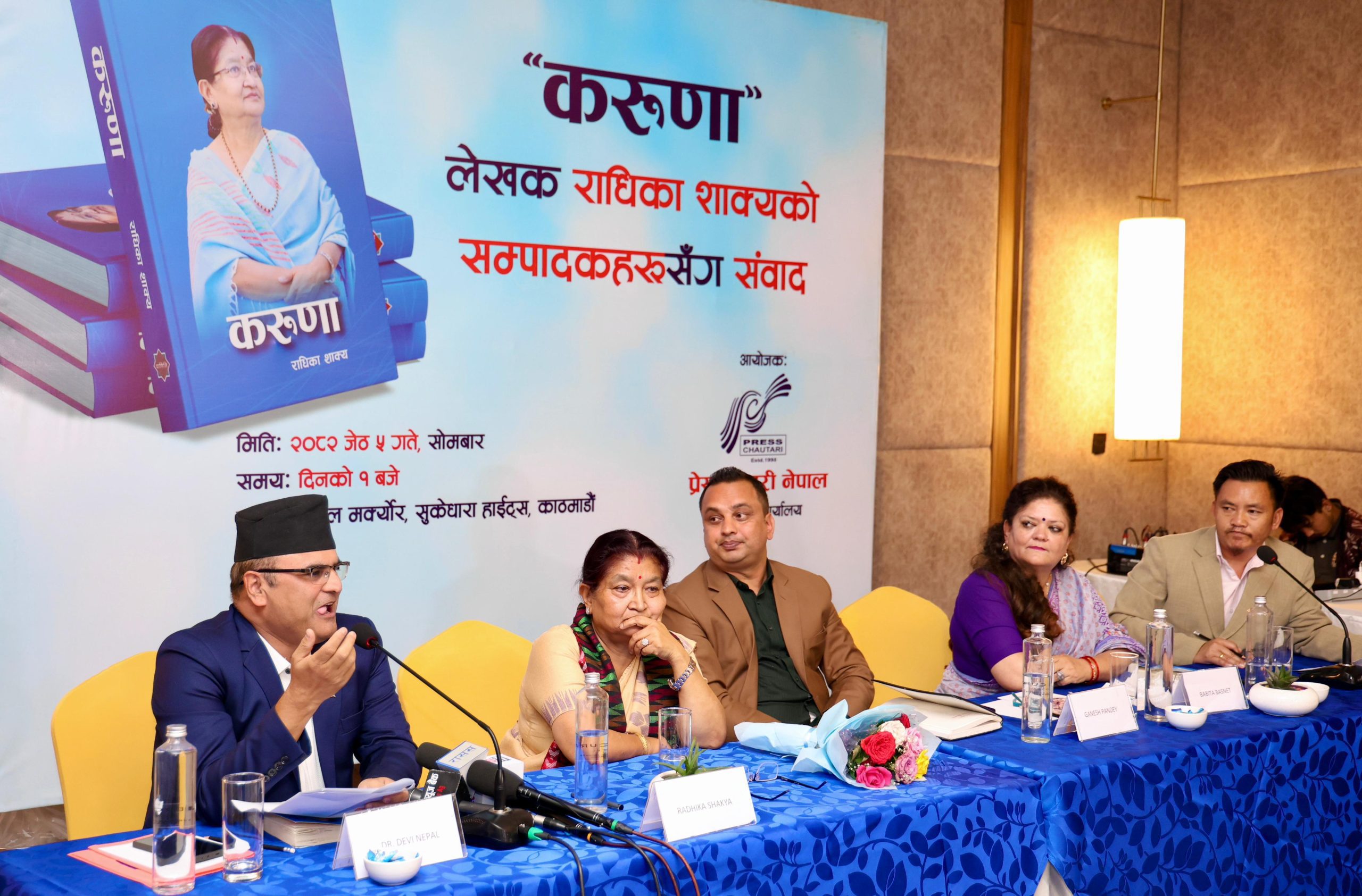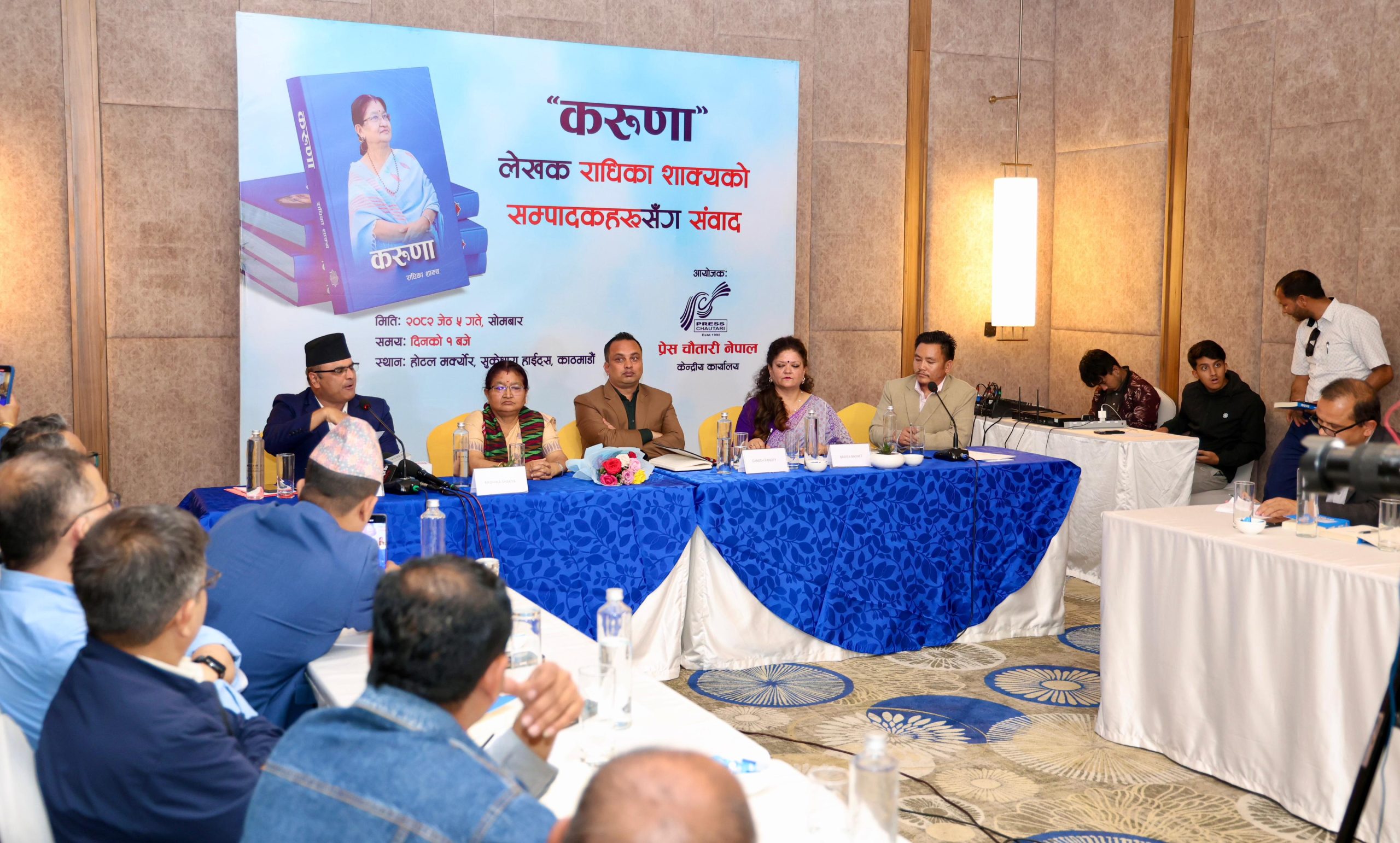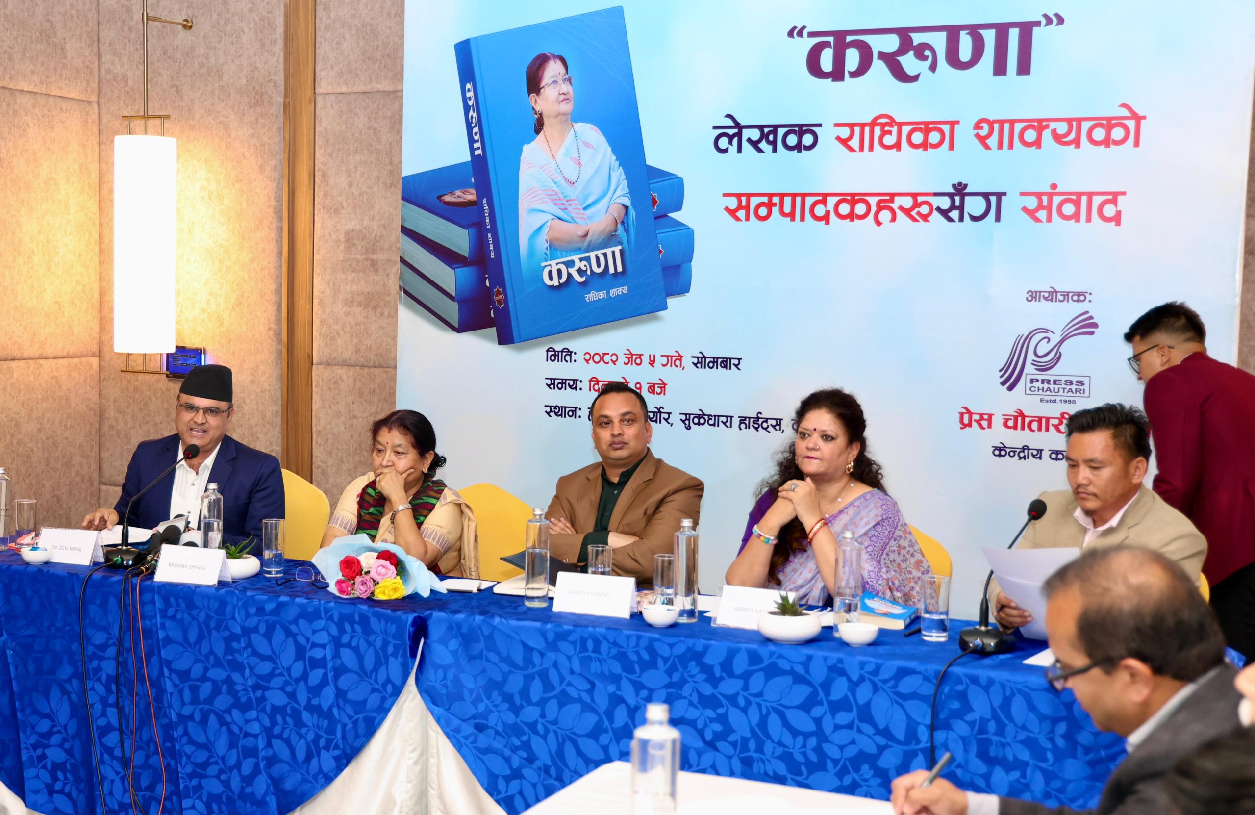 काठमाडौं। प्रधानमन्त्री केपी शर्मा ओलीकी पत्नि राधिका शाक्यको पुस्तक ‘करूणा’ माथी बिचार बिमर्श सुरू भएको छ ।काठमाडौंको होटेल मर्क्यौर, सुकेधारामा ‘करूणा’ पुस्तक माथी सम्पादकहरूले संबाद गरेका हुन् । सो कार्यक्रममा नेपाली मिडियाका सम्पादकहरूको बाक्लो उपस्थिति रहेको छ। प्रेस चौतारी नेपालले आयोजना गरेको करूणा पुस्तक माथीको बिमर्श कार्यक्रम जारी रहेको छ ।