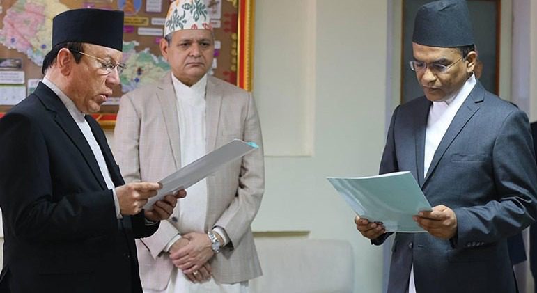 काठमाडौ । नवनियुक्त गभर्नर डा. विश्वनाथ पौडेलले पद तथा गोपनियताको सपथ लिएका छन् । प्रधान न्यायाधीस प्रकाशमान सिंह राउतसमक्ष नवनियुक्त गभर्नर पौडेलले पद तथा गोपनियताको सपथ लिएका हुन् । हिजो बसेको मन्त्रीपरिषद बैठकले पौडेलालाई गभर्नरमा नियुक्त गरेको थियो ।