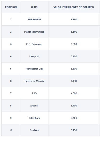 काठमाडौं । स्पेनिस क्लब रियाल मड्रिड लगातार चौथो वर्ष पनि विश्वकै सबैभन्दा धनी फुटबल क्लब बनेको छ । अमेरिकी व्यवसायिक म्यागजिन फोर्ब्सको नयाँ रिपोर्ट अनुसार क्लबको सम्पती ६.६ अर्ब अमेरिकी डलर रहेको छ ।फोर्ब्सका अनुसार रियालले सन् २०२३–२४ सिजनमा १.१३ अर्ब डलर आम्दानी गरेको थियो । योसँगै एकै सिजनमा एक अर्ब डलर आम्दानी गर्ने पहिलो फुटबल क्लब पनि बनेको छ। फोर्ब्सको सूचीमा ६.६ अर्ब अमेरिकी डलर सम्पतीसहित इङ्लिस क्लब म्यानचेस्टर युनाइटेड दोस्रो स्थानमा छ। युनाइटेडले सन् २०२३–२४ सिजनमा ८३ करोड ४० लाख डलर आम्दानी गरेको थियो । यसैगरी बार्सिलोना, लिभरपुल र म्यानचेस्टर सिटी, आर्सनल, टोटनह्याम, चेल्सी, बायर्न म्युनिख र पेरिस सेन्ट जर्मन (पिएसजी) तेस्रोदेखि १०औं स्थानमा छन् ।