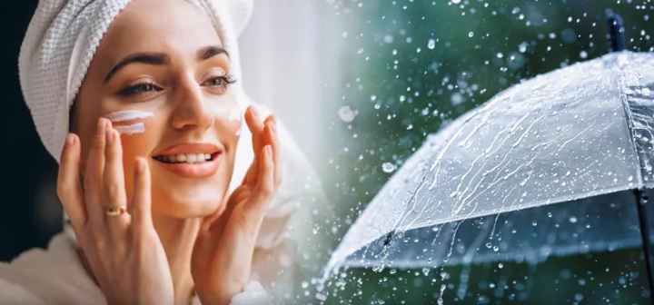 वर्षायाममा आर्द्रताका कारण छालाका खुल्ला छिद्रहरू बन्द हुन्छन्, जसले गर्दा पिम्पलजस्ता छालासम्बन्धी रोग लाग्न थाल्छ। वर्षायाममा अनुहारमा हल्का मोइस्चराइजर प्रयोग गर्नुपर्छ । यसले छालालाई चिल्लो बनाउँदैन । यसका साथै वर्षामा मेकअपको प्रयोग कम गर्ने प्रयास गर्नुहोस्। सनस्क्रिन लागू गर्न नबिर्सनुहोस, मौसम जुनसुकै भए पनि सनस्क्रिन लगाउनु एकदमै जरुरी हुन्छ । मनसुनमा पनि सनस्क्रिन नमिल्दा हानिकारक हुन सक्छ। ध्यान राख्नुहोस् कि तपाईंले सनस्क्रिन लागू गर्न नबिर्सनु हुँदैन, विशेष गरी यदि तपाईं दिन र रातको सबै समयमा बाहिर जाँदै हुनुहुन्छ भने। साथै, तपाईंले आफ्नो छाला अनुसार सनस्क्रिन प्रयोग गर्नुपर्छ।