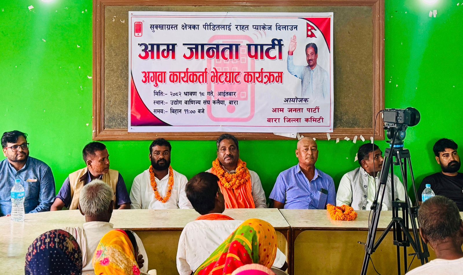 आजपा बाराका अध्यक्ष राजकिशोर साहको अध्यक्षतामा भएको कार्यक्रममा आजपा केन्द्रीय कार्यालयका सदस्यहरु अशोक लामा, त्रिभुवन साह, उमेश कुश्वाहा लगायतको विशेष सहभागिता रहेको थियो । उनीहरुले जलसंकट भएर जिल्लाका किसानदेखी सर्वसधारण नागरिकले दुख पाइरहेको जनाएका छन् ।