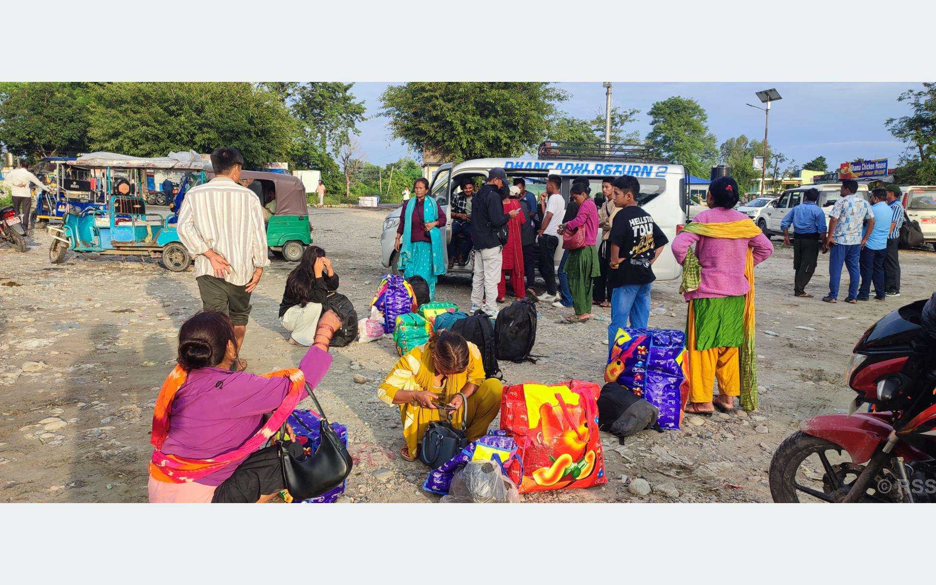 “पैसा नभई दसैँ चल्दैन, यहाँ मजदुरी गर्नसमेत नपाइएपछि के गर्नु ! एक महिना मजदुरी गरेर तिहार मनाउन फेरि गाउँ फर्किने सोच छ”, उहाँले भन्नुभयो । गरिबीका कारण परिवार पाल्न मुस्किल भएपछि चाडपर्वको मुखमा सुदूरपश्चिमका नाका भएर दैनिक सयौँ नेपाली रोजगारीका लागि भारत जाने गरेका छन् । कैलालीको बौनियाका कृष्ण सेरलाले विद्यालयको बिदाको समय सदुपयोग गर्न भारत जान लागेको बताउनुभयो । “बुबाआमा भारतमै रोजगारी गर्नुहुन्छ, विद्यालय बिदा भएपछि म पनि उतै जान लागेको हुँ”, उहाँले भन्नुभयो । भारत सुदूरपश्चिम र कर्णाली प्रदेशका मानिसहरूका लागि रोजगारी प्रमुख गन्तव्य हो । —