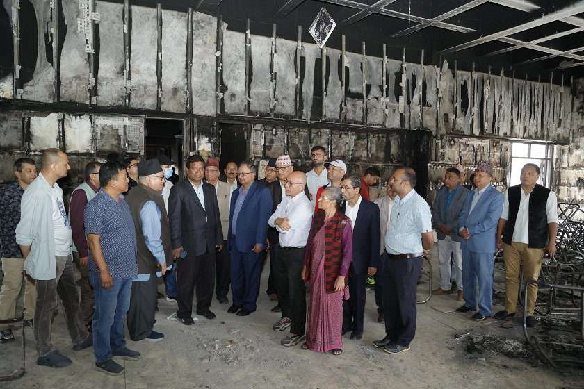 उपाध्यक्षद्वय गुरु बराल, अष्टलक्ष्मी शाक्य, महासचिव शङ्कर पोखरेल, विदेश विभाग प्रमुख राजन भट्टराई, नेता अमृतकुमार बोहरालगायत नेताहरू अवलोकनमा जानुभएको थियो । उहाँहरूलाई कांग्रेस कोषाध्यक्ष उमेश श्रेष्ठ र केन्द्रीय कार्यालय सचिव प्रदीप पराजुलीले क्षतिको जानकारी गराउनुभएको थियो । “एउटै समूहले योजनाबद्ध रूपमा क्षति पु¥याएको हो । पहिलो, दोस्रो र तेस्रो पटकसम्म उनीहरू आएर सामग्री लुटेर लगे, चौथोपटक आएर आगो लगाइदिए”, श्रेष्ठले भन्नुभयो । —