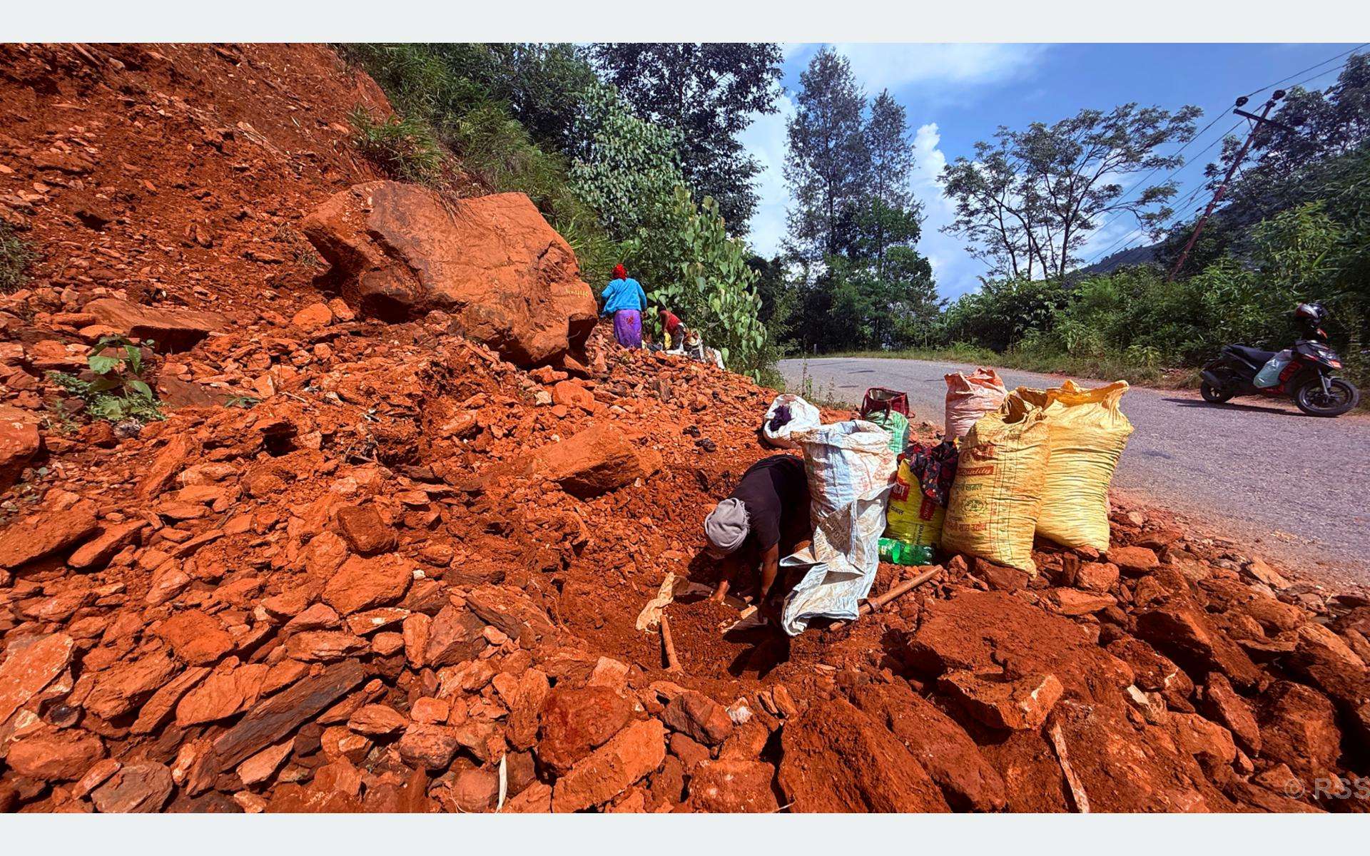 ढोरपाटन (बागलुङ), निसीखोला गाउँपालिका–४ की ६७ वर्षीया जेठी विकले रातोमाटो बिक्री गरेर दसैँ खर्च जोहो गर्न थालेको करिब २० वर्ष भयो । ग्रामीण क्षेत्रका घरमा रातोमाटो र सेतो कमेरोमाटोले पोत्ने हुँदा विकले घरघरमै माटो पुर्याउँदै आउनुभएको छ । पछिल्लो पाँच वर्षयता भने आयाति रङले घर पोत्ने चलन बढेपछि विकलाई दसैँ खर्च जोहो गर्न समस्या भएको छ । दसैँ आउनुभन्दा एक साताअगाडि नै घरका भित्ता, झ्याल र ढोका रङ्ग्याउने प्रचलन अझै छ, तर पहिलेजस्तो स्थानीयस्तरमा पाइने माटोले पोत्ने चलन भने हराउँदै भएको हो । “एक दशकअघिसम्म दसैँका बेला करिब १०० घरमा माटो पुर्याउने गरेको थिए, हाल १५ घरमा पनि माटोको माग हुँदैन ।