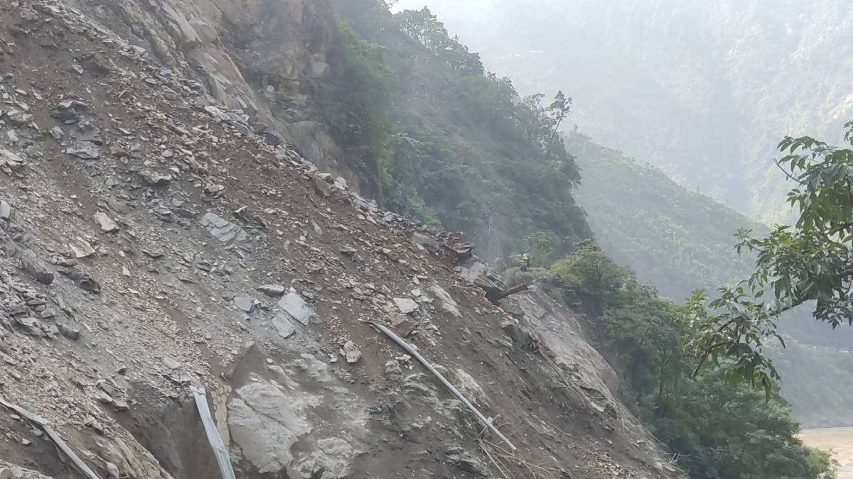 चितवन । नारायणगढ–मुग्लिन सडक खण्डको तुईन खोलामा आज पुनः सुक्खा पहिरो खसेको छ । अपरान्ह १२ बजे खसेको पहिरोका कारण सडक दुईतर्फी अवरुद्ध भएको डिभिजन सडक कार्यालय भरतपुरका सूचना अधिकारी कृष्ण आचार्यले जानकारी दिनुभयो । उहाँका अनुसार पहिरो निरन्तर झरिरहेको छ । उहाँका अनुसार पहिरोले सडकको ७० मिटर भाग ढाकेको छ । अहिले दुई वटा मेसिन पहिरो पन्छाउन प्रयोग भइरहेको पनि उहाँको भनाइ छ । गत हप्ता पनि पहिरो खस्दा सडकमा यातायात सञ्चालन गर्न ४८ घण्टा लागेको थियो ।