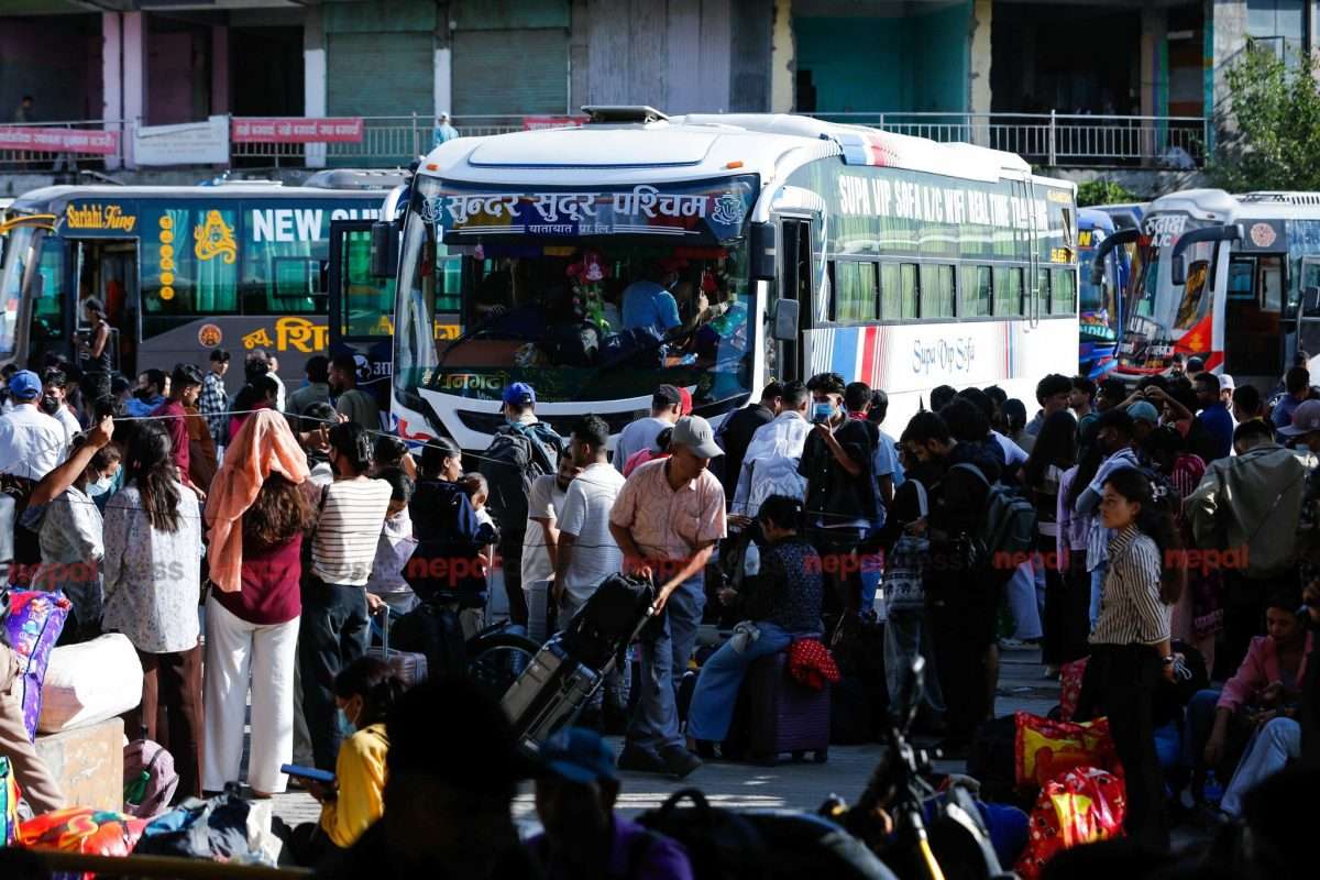 काठमाडौँ । बितेका २४ घण्टामा काठमाडौँ उपत्यकाबाट एक लाख ११ हजार सर्वसाधारण बाहिरिएका छन् । काठमाडौँ उपत्यका ट्राफिक प्रहरी कार्यालयका अनुसार घटस्थापनादेखि आइतबार अपराह्न सम्ममा चार लाख ६७ हजार मानिसले काठमाडौँ छाडेका छन् । यसैबीच, नेपाल यातायात व्यवसायी राष्ट्रिय महासङ्का अध्यक्ष विजयबहादुर स्वारले अधिकांश सडकमा ट्राफिक जामले यात्रीलाई गन्तव्यमा पुग्न समस्या भएको बताउनुभएको छ ।
