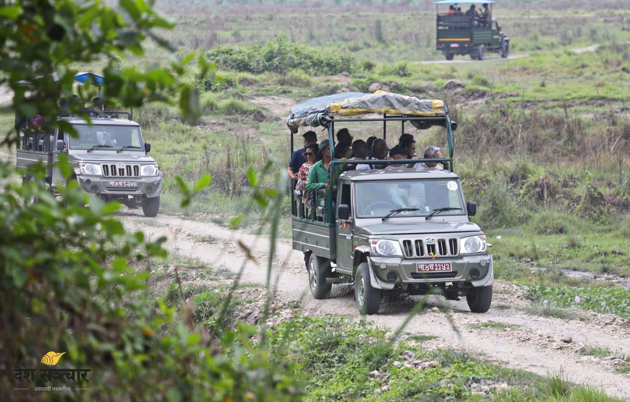 गत साल सञ्चालन भएका जिपलाई मात्र यस वर्ष नवीकरण गरी जिप सफारी सुरु गरिएको हो । गत वर्ष जीर्ण देखिएका जिपलाई मर्मतसम्भार गरेर नवीकरणमा ल्याइएको हो ।गत महिनादेखि नै निकुञ्जले बाटो मर्मतसम्भार र झाडी फाँड्ने काम सुरु गरेको थियो । गएको असार १६ गतेदेखि जिप सफारी बन्द गरिएको थियो । निकुञ्जभित्र सौराहाबाट ३२, कसराबाट १६, मेघौलीबाट नौ जिप सञ्चालन भएका छन् । यस्तै उजौलीबाट दुई, अमलटारीबाट पाँच र माडीबाट एउटा जिपले निकुञ्जभित्र सफारी गर्न लागेको हो ।