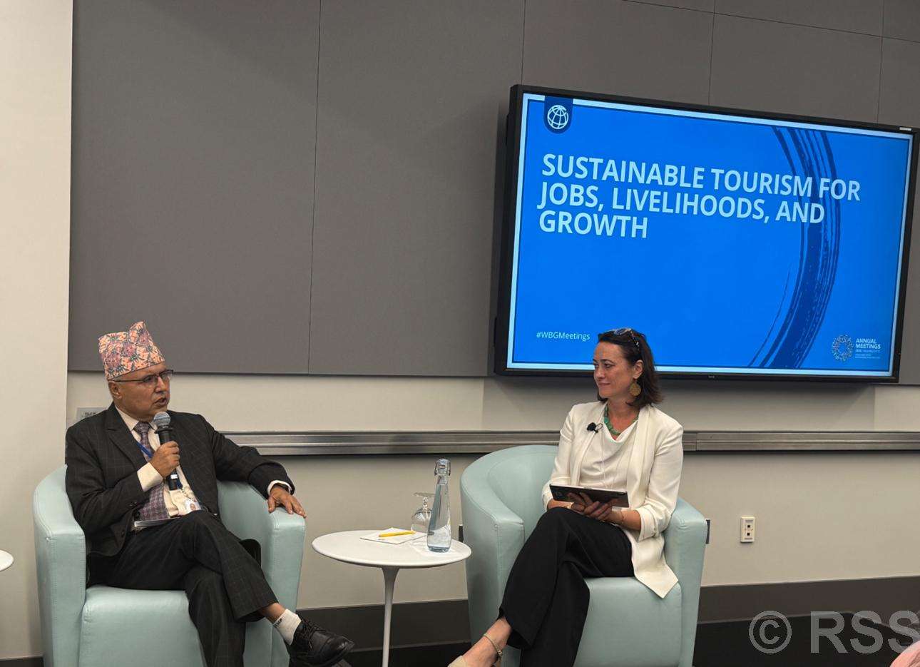 वासिङ्टन डिसी (अमेरिका), अर्थमन्त्री रामेश्वरप्रसाद खनालले नेपाल प्राकृतिक र सांस्कृतिक सम्पदाले धनी देश भएकाले नेपाल भ्रमणको लागि विश्व समुदायलाई आग्रह गर्नुभएको छ । बिहीबार विश्व बैंक समूहले यहाँ आयोजना गरेको ‘दिगो पर्यटनः रोजगारी, जीवनयापन आर्थिक वृद्धिको लागि विषयक’ छलफल कार्यक्रममा भाग लिँदै मन्त्री खनालले उक्त धारणा राख्नुभएको हो । कार्यक्रममा भाग लिँदै मन्त्री खनालले पर्यटकहरूलाई सदैव न्यानो आथित्यता प्रदान गर्न र विश्वस्तरको उत्कृष्ट सेवा प्रदान गर्ने बताउनुभयो । कार्यक्रममा विभिन्न देशका प्रतिनिधिहरूको सहभागिता रहेको थियो । राष्ट्रिय समाचार समिति (रासस)