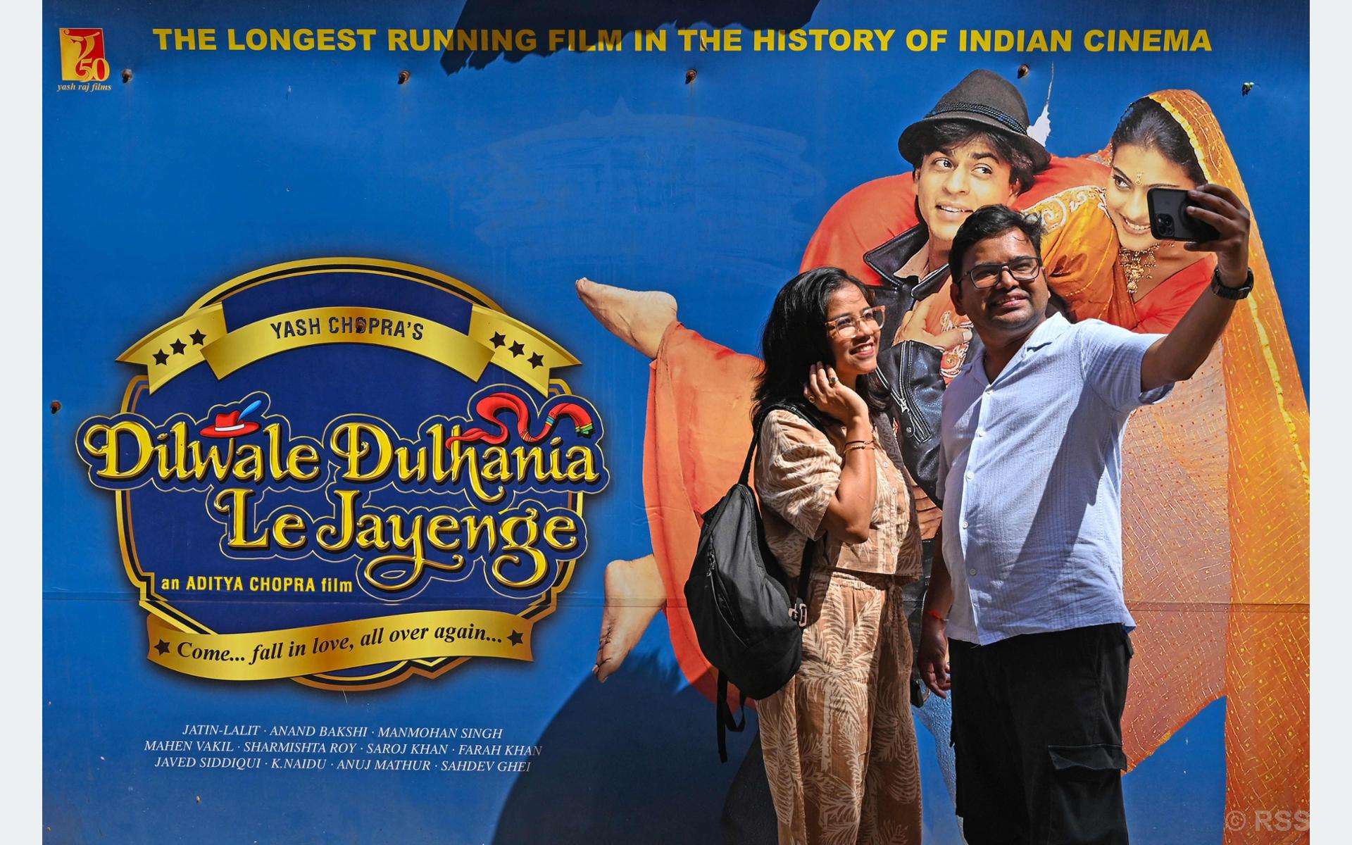 शाहरुख खान र काजोल अभिनीत यस चलचित्रले शाहरुखलाई सुपरस्टारको उच्चतामा पुर्यायो र आधुनिक हिन्दी रोमान्सको परिभाषा नै परिवर्तन गर्यो । सिनेमाघरका प्रमुख मनोज देसाई भन्नुहुन्छ, “हप्तादिनमा प्रायः कलेजका विद्यार्थी र युवा दम्पतीहरू आउँछन्, तर आइतबार त ३० वर्षपछि पनि करिब ५०० दर्शक उपस्थित हुन्छन् ।” मराठा मन्दिरमा निरन्तर प्रदर्शन हुँदै आएको यो फिल्म एक हजार ५०० हप्ताभन्दा बढी समयदेखि चलिरहेको छ । यसले एक समयको सुपरहिट एक्सन–थ्रिलर ‘शोले’ को कीर्तिमानलाई समेत पछि पारिसकेको छ । फिल्मले विदेशमा रहेका दोस्रो पुस्ताका भारतीयहरूको उदार मूल्य र उनीहरूका आमाबाबुको परम्परागत सोचबीचको द्वन्द्वलाई प्रभावशाली रूपमा चित्रण गर्छ । यसको प्रसिद्ध दृश्य—जहाँ नायिका आफ्नो प्रेमीको हात समात्न रेलको छेउमा दौडिन्छिन्—आज पनि दर्शकहरूलाई ‘गुजबम्प्स’ (आङ सिरिङ्ग बनाउने) दिने क्षण बनेको छ । देसाईका शब्दमा, “त्यो दृश्य बुबाले आफ्नी छोरीलाई आफ्नो निर्णय गर्ने स्वतन्त्रता दिएको क्षण हो र त्यही भावनाले हरेकको हृदय छोएको छ ।” केही दर्शकका लागि डिडिएलजे जीवनकै हिस्सा बनिसकेको छ । “एक महिला त २० वर्षदेखि हरेक हप्ता आउँछिन्”, देसाईले हाँस्दै भन्नुभयो, “हामी उनलाई कुनै विशेष सुविधा दिँदैनौँ—उनी टिकटको मूल्य तिर्छिन् ।