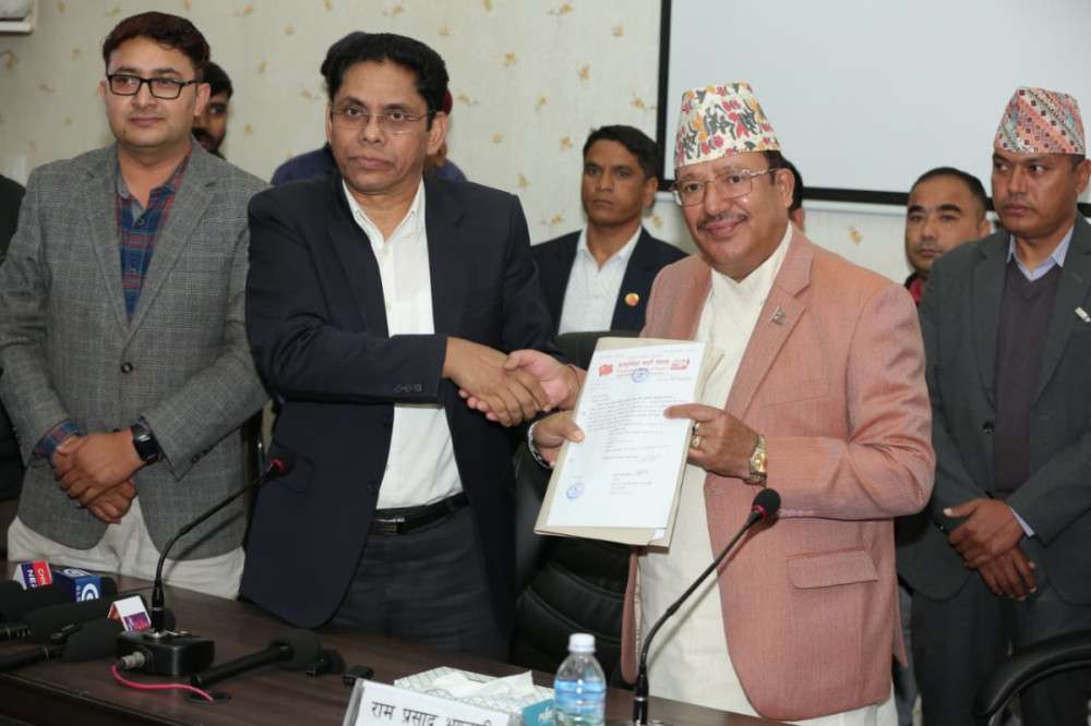 काठमाडौँ, नेत्रविक्रम चन्द ‘विप्लव’ नेतृत्वको ‘कम्युनिष्ट पार्टी नेपाल’ले निर्वाचन आयोगमा आज दल दर्ताका लागि निवेदन दिएको छ । आयोगको कार्यालय, बहादुर भवनमा पुगेर सो पार्टीका नेता सन्तोष बुढामगर, प्रवक्ता खड्गबहादुर विश्वकर्मा ‘प्रकाण्ड’ सहितले दल दर्ताको निवेदन दिनुभएको हो । आयोगका कार्यवाहक प्रमुख आयुक्त रामप्रसाद भण्डारीसहितका पदाधिकारीले निर्वाचनमा गएर दलहरुको समर्थन लिने लोकतान्त्रिक अभ्यासमा लागेकामा सो दलका नेता–कार्यकर्तालाई धन्यवाद दिनुभयो । आयुक्त भण्डारीले विशेष परिस्थितिमा आगामी फागुन २१ गतेका लागि निर्धारित प्रतिनिधिसभाको निर्वाचनलाई सफल तुल्याउन राजनीतिक दल र सम्बद्ध पक्षसँगको परामर्शमा आयोगले काम गर्ने विश्वास दिलाउनुभयो ।