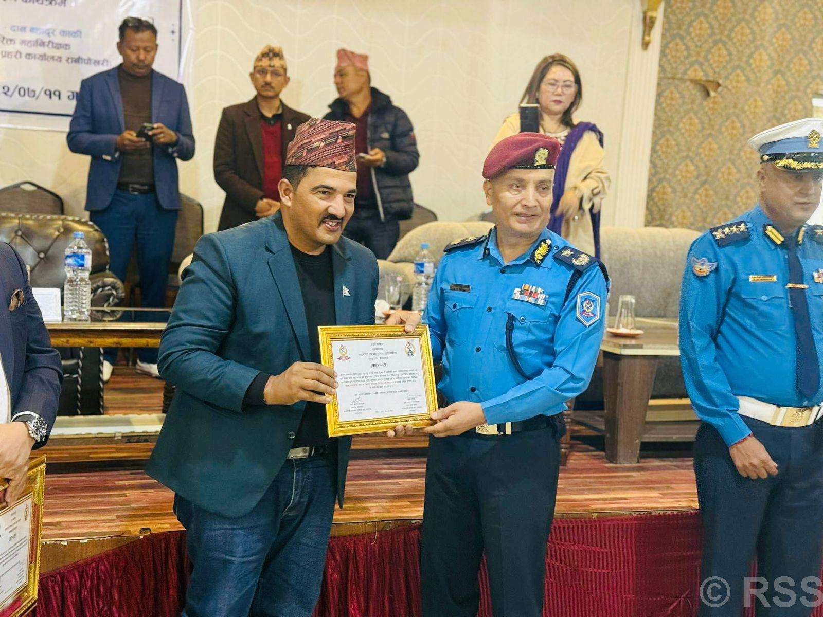 काठमाडौँ, जनसवाल राष्ट्रिय दैनिकका सम्पादक तथा अध्यक्ष रामजी बगाले सम्मानित हुनुभएको छ । आज एक कार्यक्रमबीच प्रहरी अतिरिक्त महानिरीक्षक दानबहादुर कार्की र गैरआवासीय नेपाली सङ्घ (एनआरएनए) का अध्यक्ष महेशकुमार श्रेष्ठले संयुक्त रूपमा उहाँलाई प्रमाणपत्रसहित सम्मान गर्नुभएको हो । जेन्जी प्रदर्शनका क्रममा क्षतिग्रस्त काठमाडौँ उपत्यका ‘ट्राफिक कन्ट्रोल रूम’ पुनर्निर्माणमा सञ्चारमाध्यमका तर्फबाट उल्लेखनीय सहयोग पु-याएबापत उहाँलाई सम्मान गरिएको हो ।
