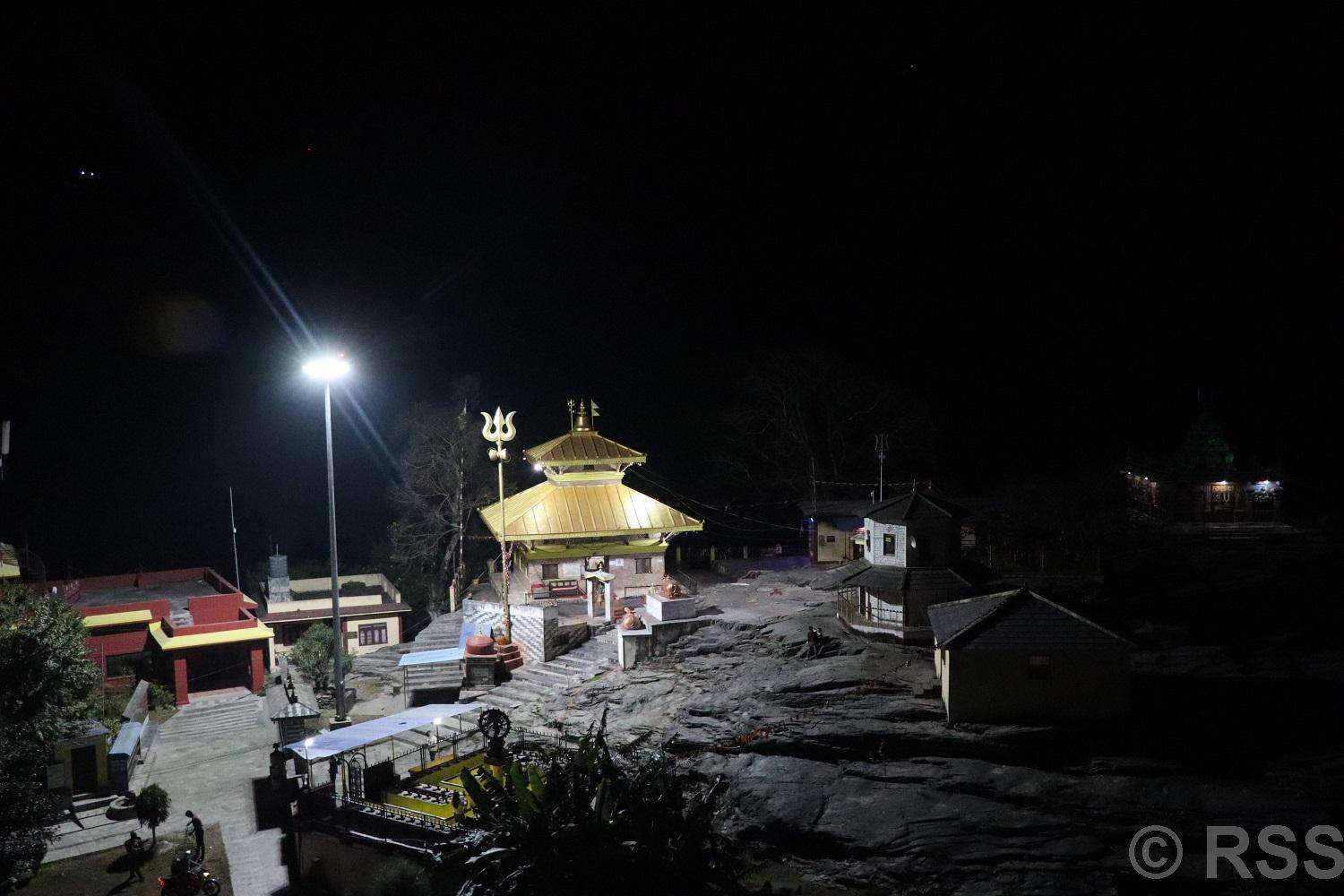 सोह्र मिटर अग्लो विद्युत्को पोलको टुप्पामा चारैतिर फर्काएर चार–चार सय वाट क्षमताका आठ वटा बत्ती राखिएको छ । अग्लो पोलमा राखिएको बत्तीले मन्दिर परिसरलाई उज्यालो बनाएको छ । रातको समयमा मात्र बत्ती बल्ने र दिउँसो बन्द हुने स्वचालित उपकरण जडान भएको छ ।
