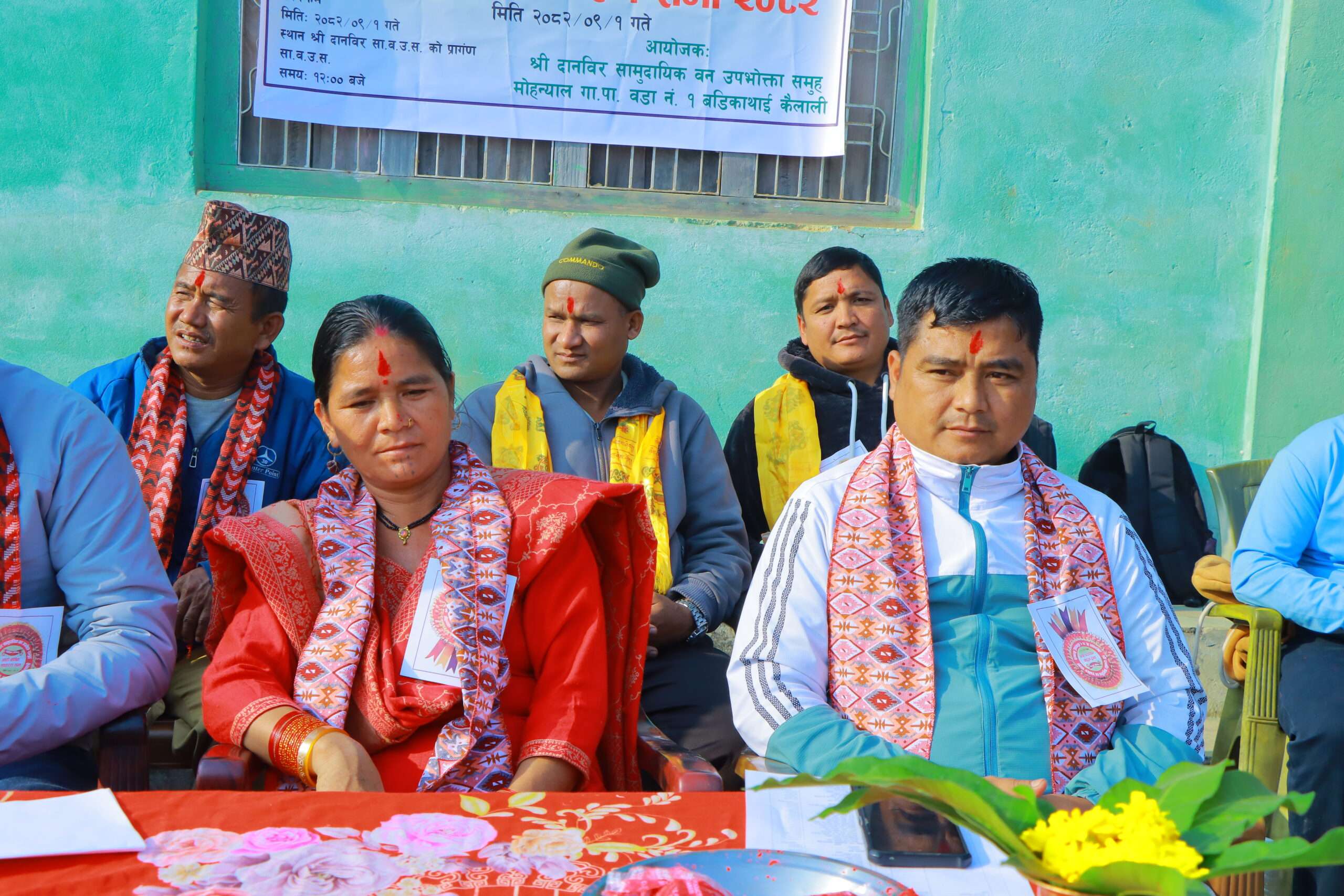 संस्थाकी अध्यक्ष कल्पना थापाको सभापतित्वमा सम्पन्न कार्यक्रममा प्रमुख अतिथि मोहन्याल गाउँपालिका–१ का वडा अध्यक्ष पिरम बुढा (प्रेम) रहनुभएको थियो। विशिष्ट अतिथिमा सव–डिभिजन वन कार्यालय फलेबीसौंनाका वन प्राविधिक मानबहादुर चौधरी तथा गतिशील सामुदायिक वन उपभोक्ता समूहका अध्यक्ष गणेश घर्ती मगर रहनुभएको थियो।