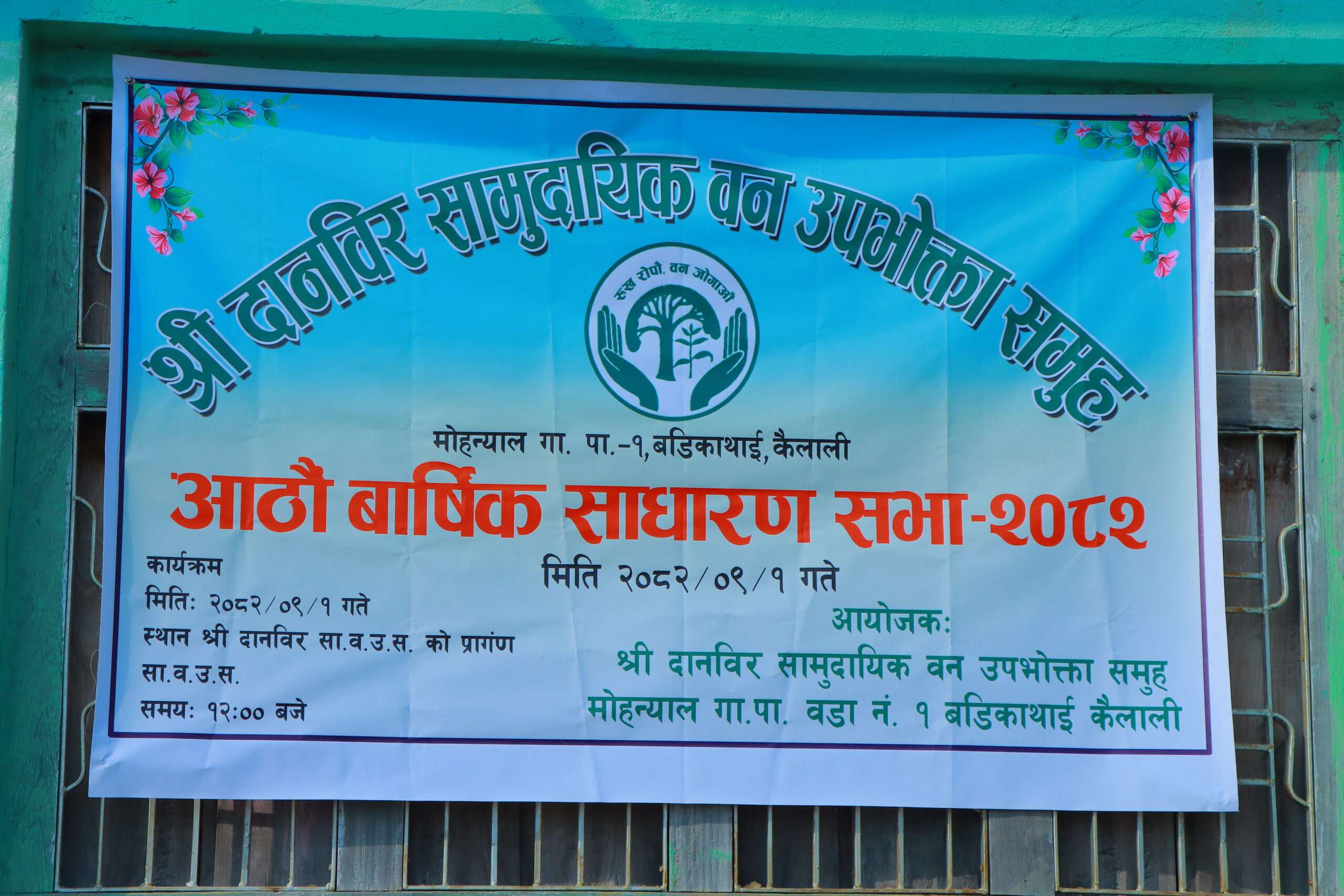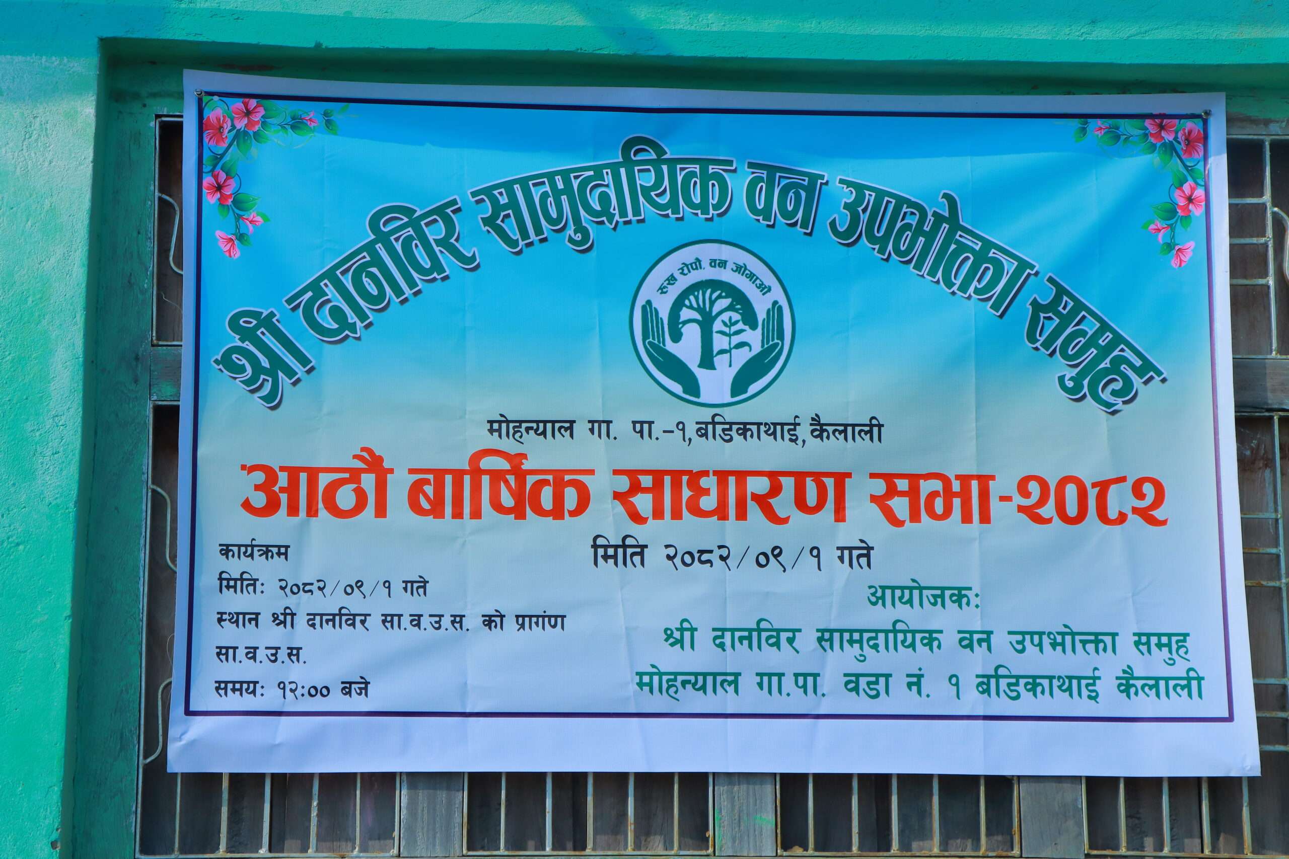 कैलाली । कैलाली जिल्लाको मोहन्याल गाउँपालिका–१ बडीकाथाईस्थित दानवीर सामुदायिक वन उपभोक्ता समूहको आठौं वार्षिक साधारण सभा सम्पन्न भएको छ।