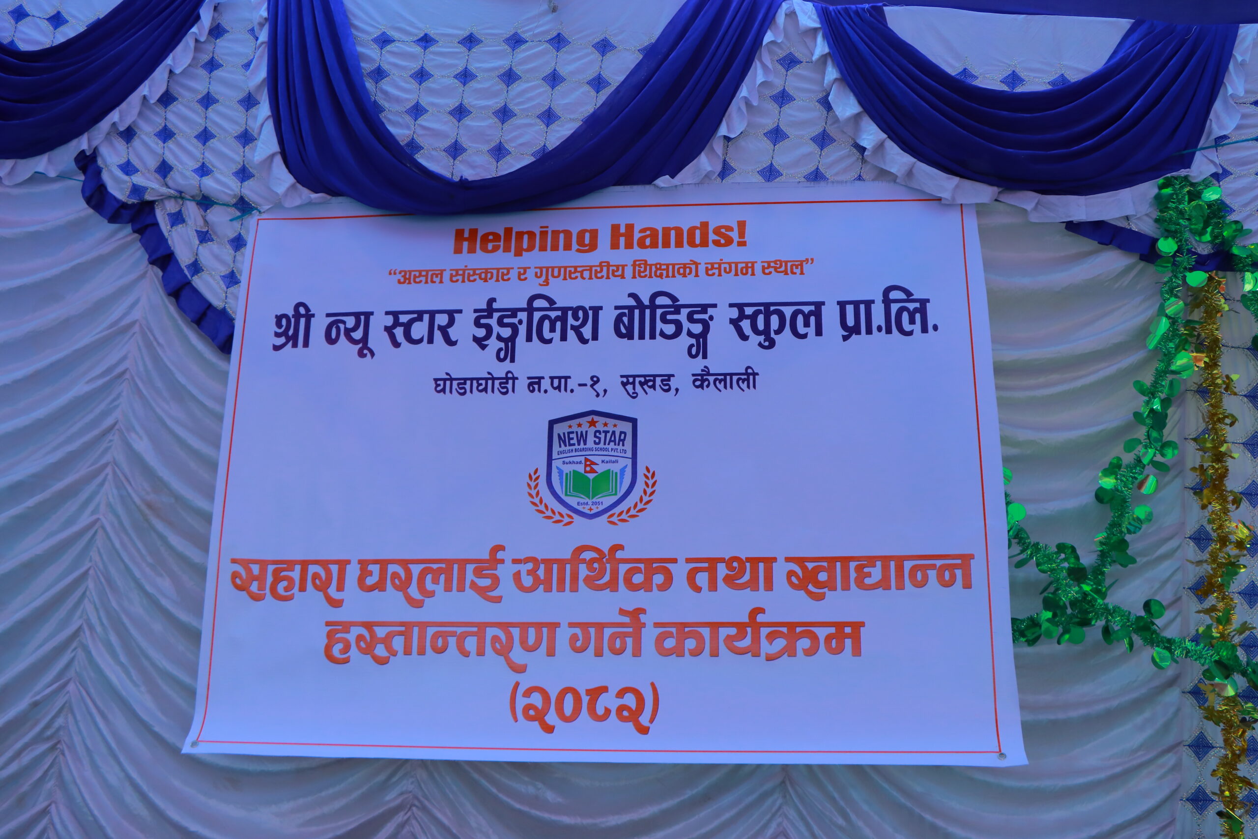 कैलाली। कैलालीको घोडाघोडी नगरपालिका–१, सुखडमा अवस्थित न्यू स्टार इङ्लिस बोर्डिङ स्कुलले विद्यार्थीहरूको शैक्षिक गतिविधिसँगै सामाजिक उत्तरदायित्व अभिवृद्धि गर्ने उद्देश्यले विभिन्न सामाजिक तथा व्यावहारिक सीपमूलक कार्यक्रमहरू सञ्चालन गर्दै आएको छ।