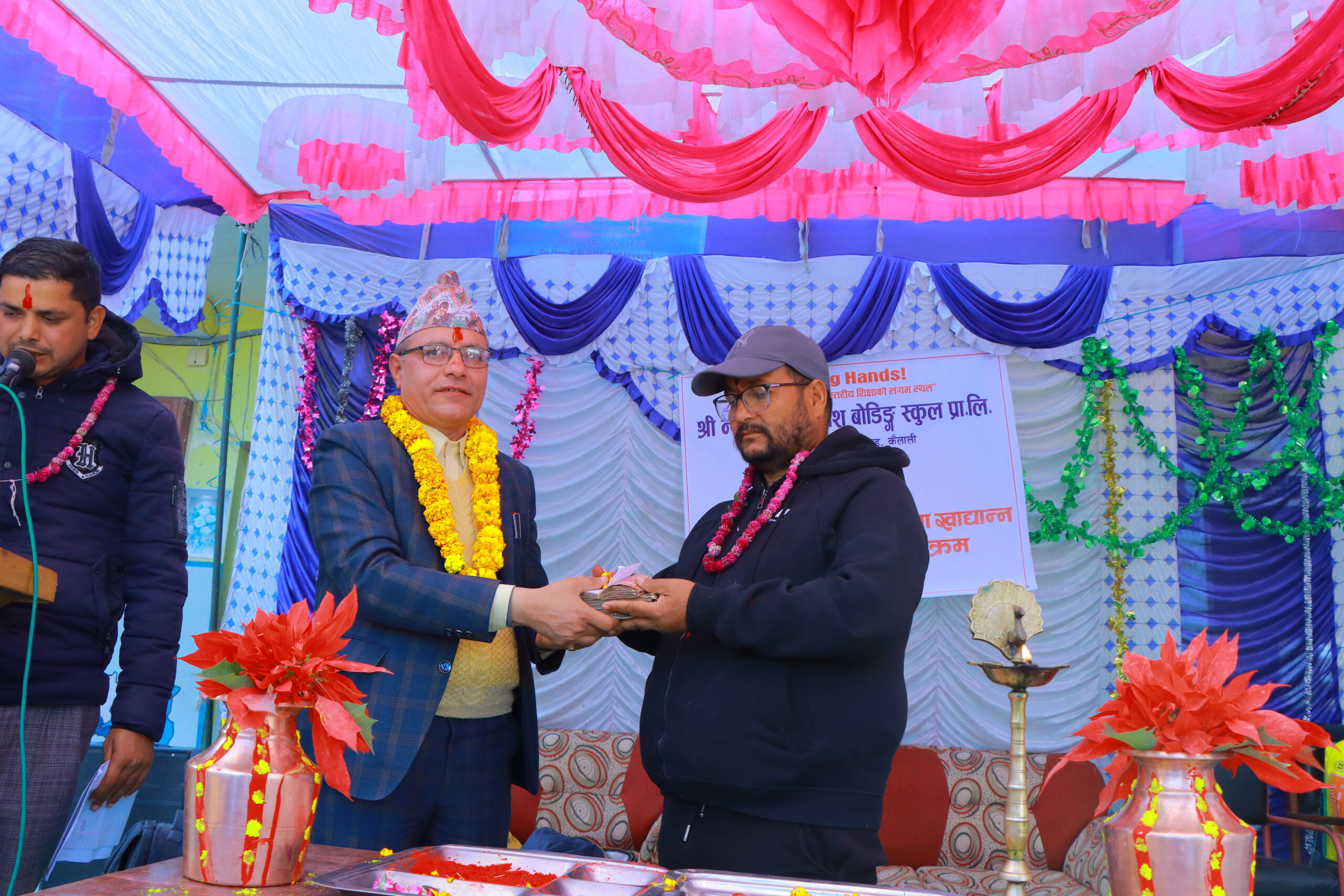 कार्यक्रममा विद्यालयका शिक्षक तथा विद्यार्थीहरूबाट संकलन गरिएको नगद २० हजार रुपैयाँसहित दाल, चामल, नुनलगायतका खाद्यान्न सामग्री सहाराघर बौनियालाई प्रदान गरिएको थियो। सहयोग हस्तान्तरण कार्यक्रममा विद्यालयका शिक्षक तथा विद्यार्थीहरूको उल्लेखनीय उपस्थिति रहेको थियो।
