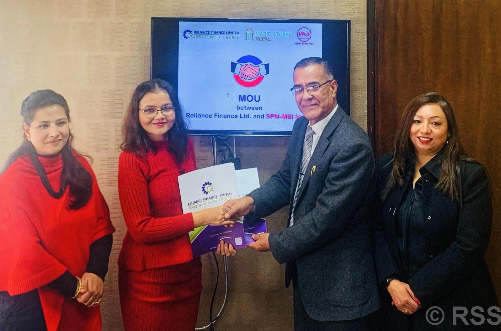 काठमाडौँ, यौन तथा प्रजनन स्वास्थ्यसम्बन्धी जनचेतना अभिवृद्धि तथा सेवाको पहुँच विस्तार गर्ने उद्देश्यले सुनौलो परिवार नेपाल र रिलायन्स फाइनान्स लिमिटेडबीच आपसी सहकार्य भएको छ ।यससम्बन्धी द्विपक्षीय समझदारीपत्रमा हस्ताक्षर भएको छ । सम्झौताअनुसार रिलायन्स फाइनान्स लिमिटेडसँग आबद्ध कर्मचारी, सेवाग्राहि तथा आन्तरिक एवं बाह्य सरोकारवालाले सुनौलो परिवार नेपालद्वारा सञ्चालित मेरी स्टोप्स सेन्टरबाट प्रदान गरिने यौन तथा प्रजनन स्वास्थ्यसम्बन्धी सेवाहरू १० प्रतिशत छुटमा प्राप्त गर्न सक्नेछन् ।
