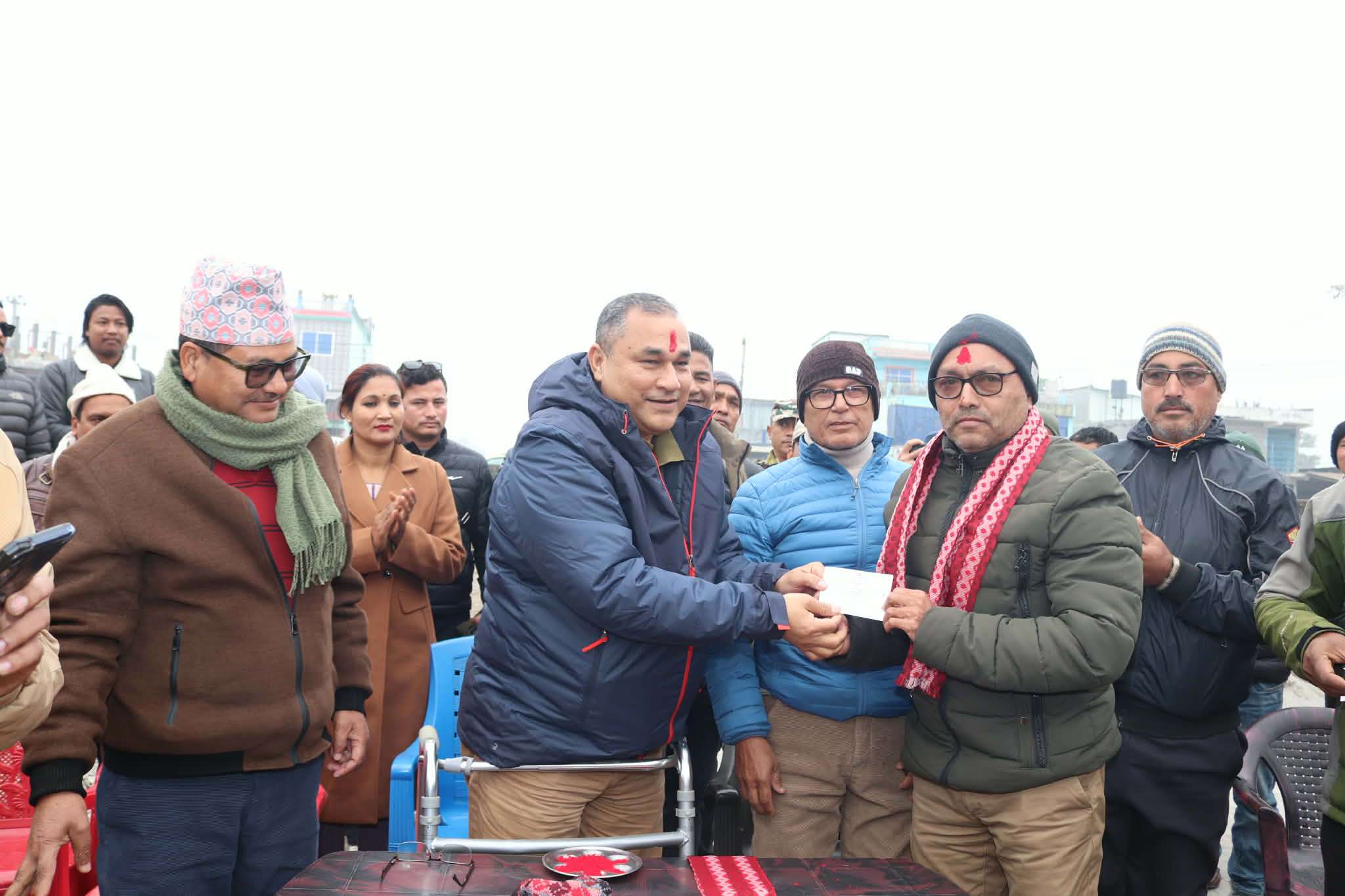 न्यू स्टार इङ्लिस बोर्डिङ स्कुलद्वारा सहाराघर बौनियालाई नगद तथा खाद्यान्न सहयोग