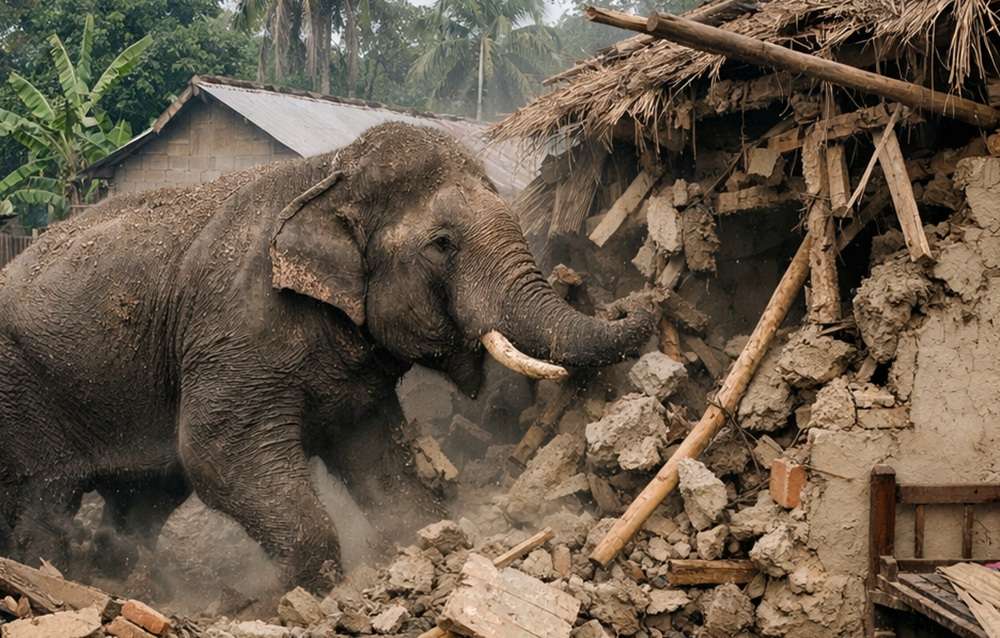 जङ्गली हात्ती गाउँमा पस्दा तीन घरमा क्षति