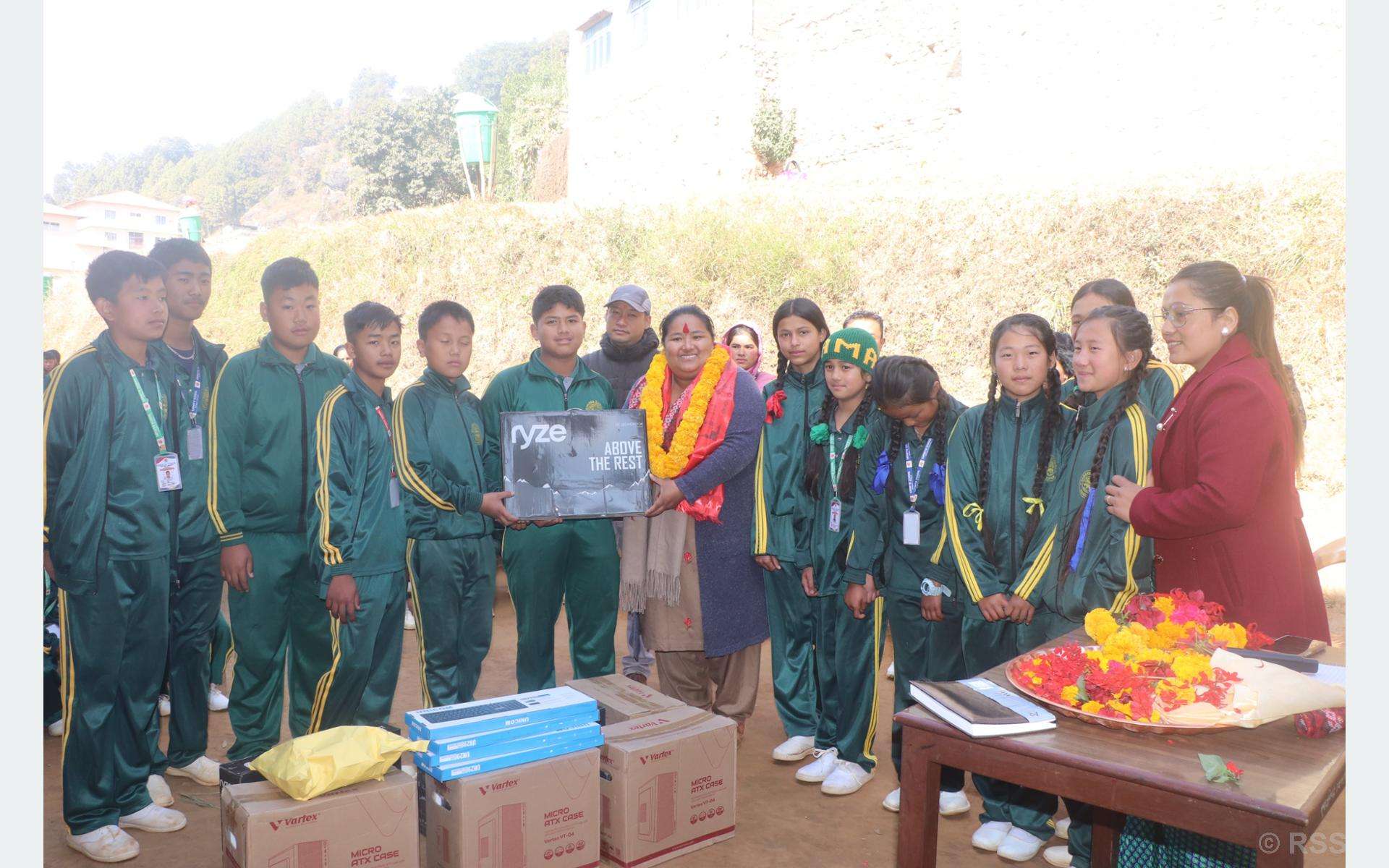 “विद्यालयले कम्प्युटर प्राप्त गरेको छ”, अध्यक्ष प्रधानले भन्नुभयो, “यसले कम्प्युटर शिक्षा सञ्चालन गर्न सहजता थप्ने हाम्रो अपेक्षा छ । विद्यालयले विद्यार्थीलाई प्रविधिमैत्री र समयानुकूल शिक्षा दिन निरन्तर ध्यान दिँदै आएको छ ।”