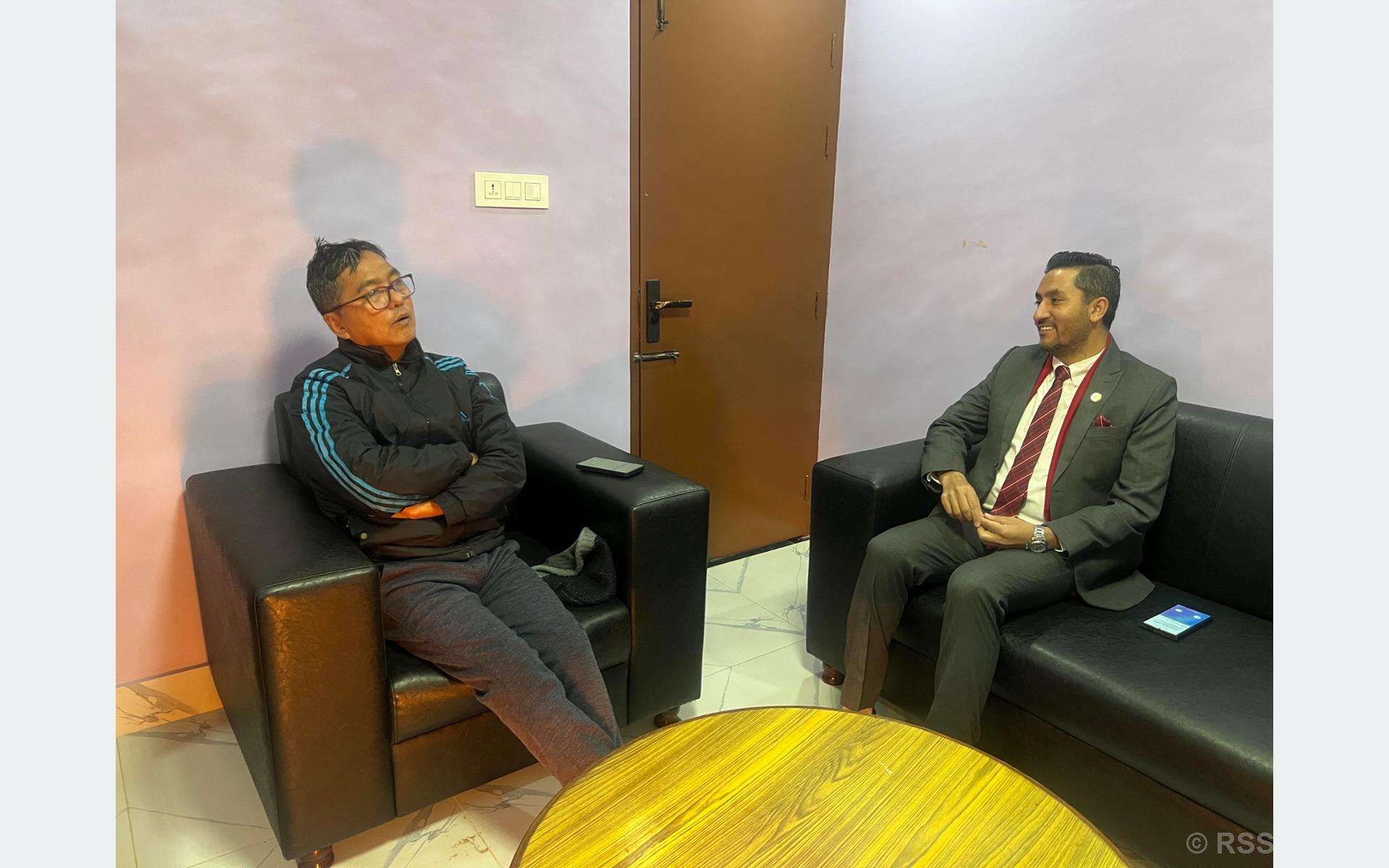 ललितपुर, सञ्चार तथा सूचना प्रविधिमन्त्री जगदीश खरेल र राष्ट्रिय प्रजातन्त्र पार्टी (राप्रपा)का अध्यक्ष राजेन्द्र लिङ्देनबीच भेटवार्ता भएको छ ।ललितपुर लुभुलामाटारस्थित लिङ्देन निवासमा आज विहान उहाँहरुबीचमा भएको भेटघाटमा आसन्न प्रतिनिभिसभा निर्वाचन , समसामयिक राजनीतिक अवस्थालगायतका विषयमा कुराकानी भएको थियो । भेटपछि सञ्चारमन्त्री खरेलले निर्वाचन सम्पन्न गर्न सरकारले सम्पादन गर्नुपर्ने काम उच्च प्राथमिकताका साथ गरिरहेको जानकारी दिनुभयो ।