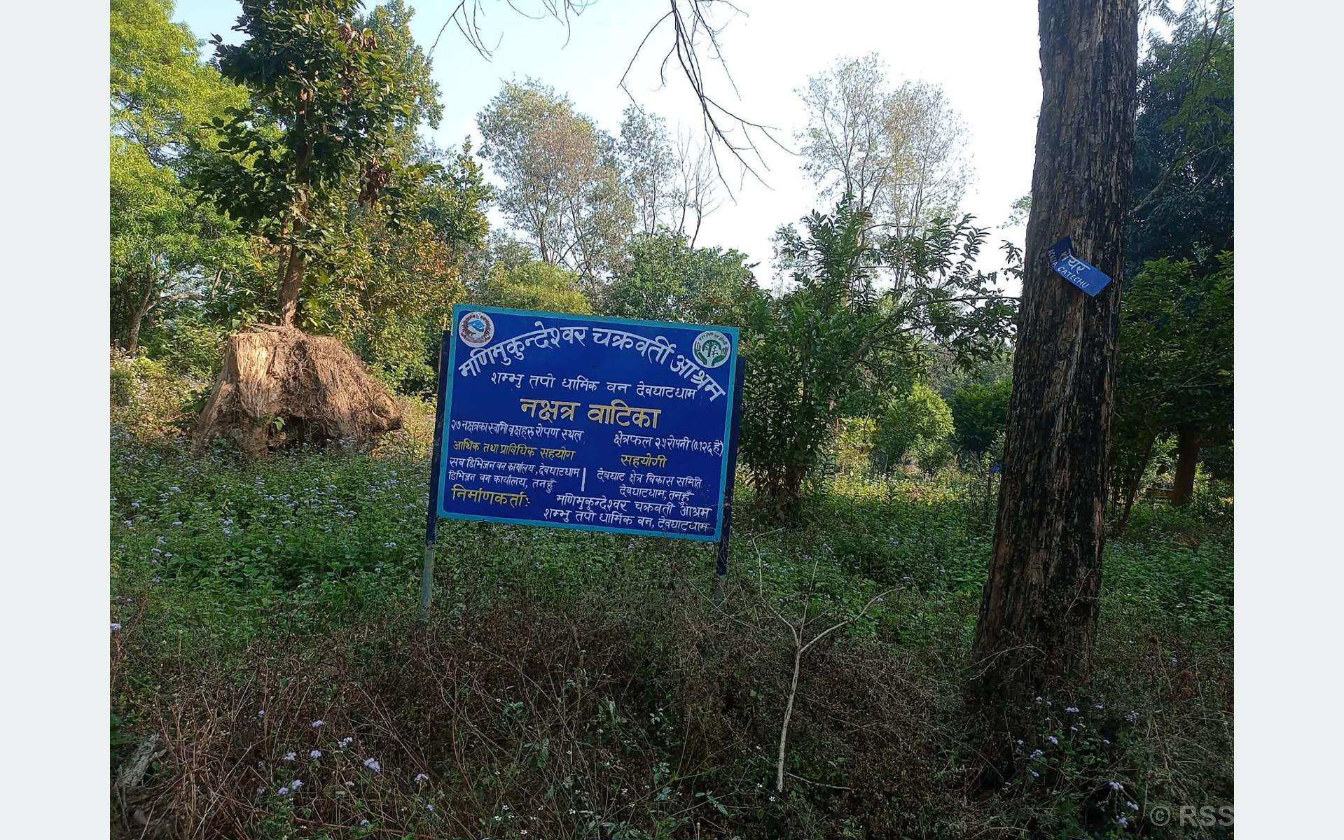 दमौली (तनहुँ),  देवघाट क्षेत्र विकास समितिको स्वामित्वमा रहेको मणिमुकुन्देश्वर चक्रवर्ती आश्रम धार्मिक वनभित्र निर्माण गरिएको नक्षेत्र वाटिका हाल संरक्षण अभावका कारण अत्यन्तै नाजुक अवस्थामा पुगेको छ । धार्मिक, सांस्कृतिक तथा वातावरणीय दृष्टिले महत्त्वपूर्ण मानिने यो वाटिका उचित व्यवस्थापन नहुँदा दिनानुदिन उजाड बन्दै गएको हो ।