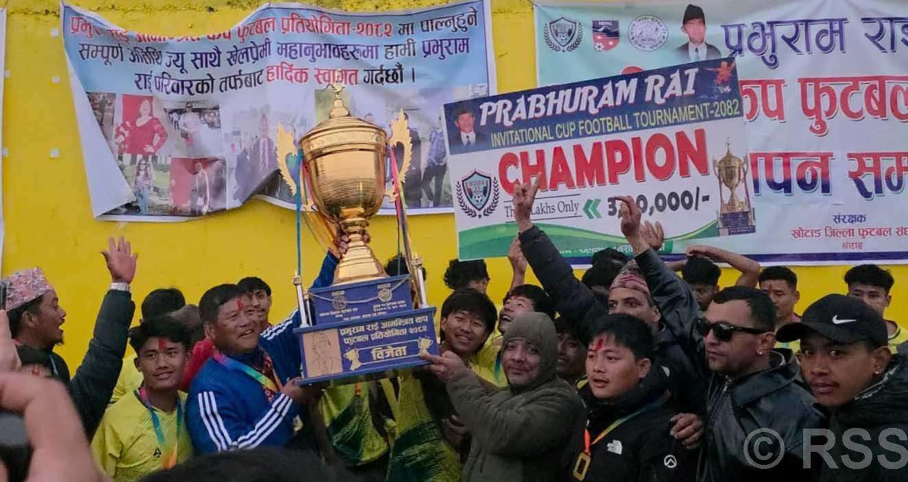 खोटाङ, दिक्तेल रुपाकोट मझुवागढी नगरपालिका–१४ बुइपामा सम्पन्न जिल्लाकै सर्वाधिक राशिको ‘प्रभुराम राई आमन्त्रित फुटबल कप–२०८२’को उपाधि नेर्पा स्पोर्टस क्लब नेर्पाले जितेको छ । बुइपास्थित यलम्बर खेलमैदानमा आइतबारसम्पन्न फाइनल खेलमा गछिया युवा समाज मोरङलाई ट्राइब्रेकरमा ५–४ गोलअन्तरले पराजित गर्दै नेर्पा स्पोर्टस क्लब नेर्पा खोटाङले उपाधि जितेको हो ।