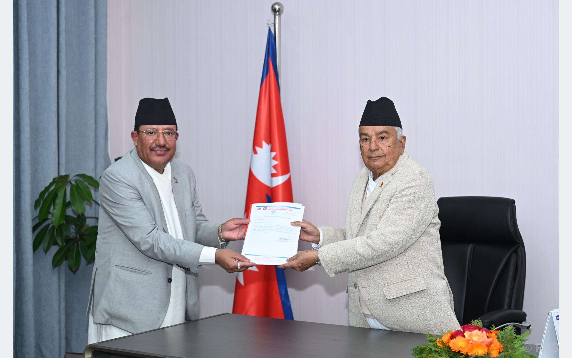 राष्ट्रपतिसमक्ष राष्ट्रियसभा सदस्य निर्वाचनको प्रतिवेदन पेस