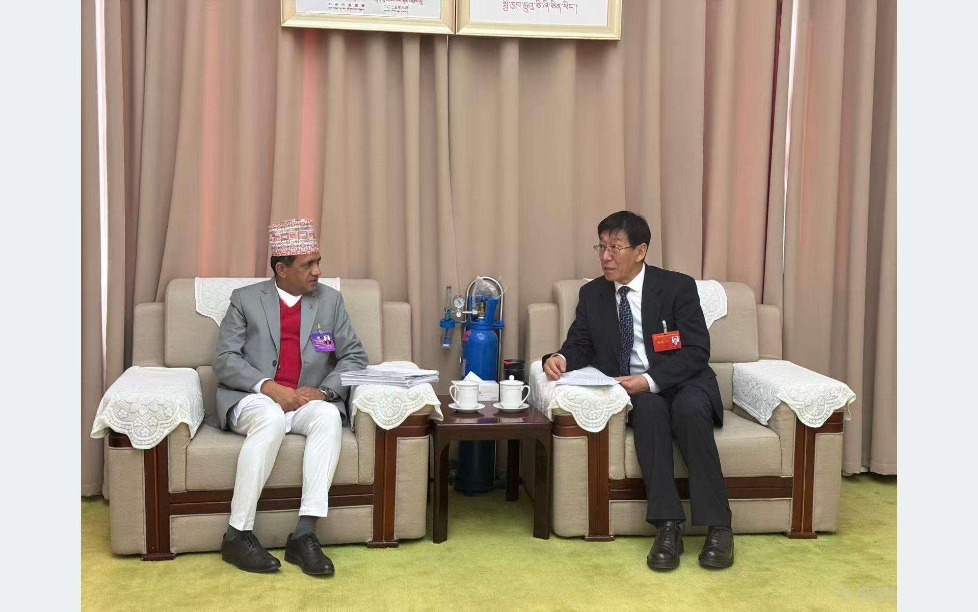 संसद्् बैठकलगत्तै महावाणिज्यदूतले सिचाङ सरकारका उपमहासचिव एवम् जातीय, धार्मिक तथा  वैदेशिक मामिला समितिका अध्यक्ष सभामुख दान्चेन लुन्चुसँग शिष्टाचार भेटघाट गर्नुभएको थियो र सो भेटका अवसरमा महावाणिज्यदूतले नेपाल–चीन सम्बन्धका विविध आयाममाथि चर्चा गर्दै हालसम्म चीनले नेपालको विकासमा पु¥याएको सहयोगका लागि धन्यवाद ज्ञापन गरेको छ ।