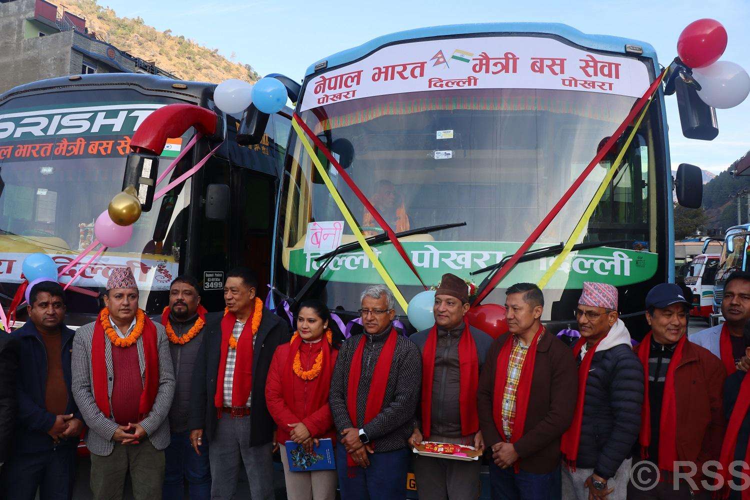 “बेनीदेखि दिल्लीसम्म २७ घण्टामा यात्रा गर्न सकिन्छ”, उहाँले भन्नुभयो, “बेनीदेखि हरेक दिन बिहान ६ः४५ बजे र दिल्लीको सरोजनी नगरबाट साँझ ४ः०० बजे बस छुट्नेछ ।” बेनीबाट नयाँ दिल्लीसम्मको प्रतियात्रु शुल्क ५४ सय रुपैयाँ र नयाँ दिल्लीबाट ३२ सय सय भारु भाडादर कायम भएको छ ।