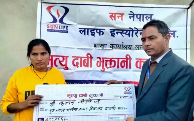 सन नेपाल लाइफ इन्स्योरेन्स लम्की शाखाद्वारा मृत्युदाबी रकम हस्तान्तरण