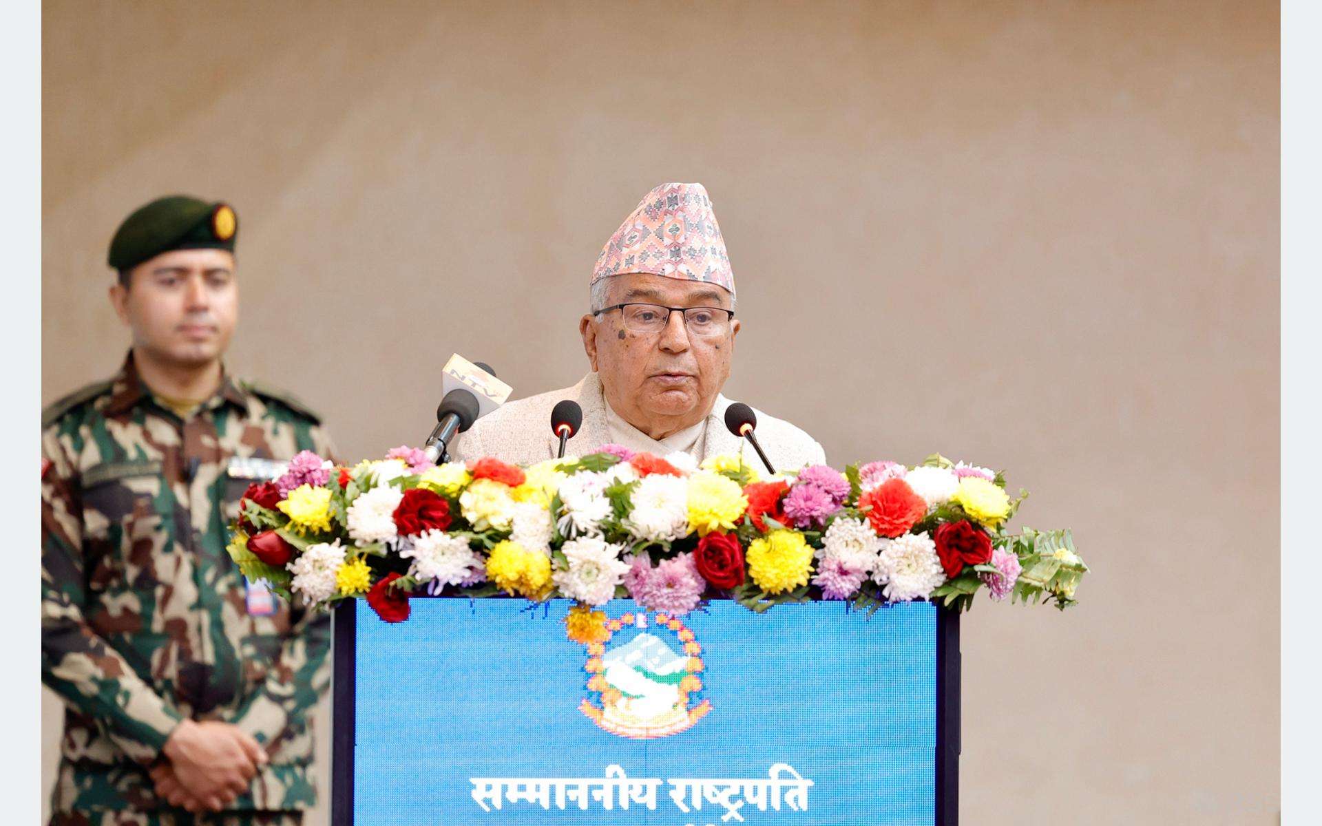 सहज र सरल तरिकाले जनतामा सेवा प्रवाह तथा सुशासनमार्फत देशको समृद्धि नै संविधान र लोकतान्त्रिक गणतन्त्रको अभिष्ट भएको बताउँदै राष्ट्रपति पौडेलले संविधान र व्यवस्थाले राखेको यही अभिष्टलाई पूरा गर्न सम्पूर्ण ध्यान केन्द्रित होेस् भनेर नै बेलाबेलामा आवाज उठ्ने गरेको र भर्खरै युवा पुस्ताले आन्दोलन गरी त्यही चाहना प्रकट गरेका हुन् भन्ने पनि नबिर्सन सबैलाई आग्रह गर्नुभयो ।