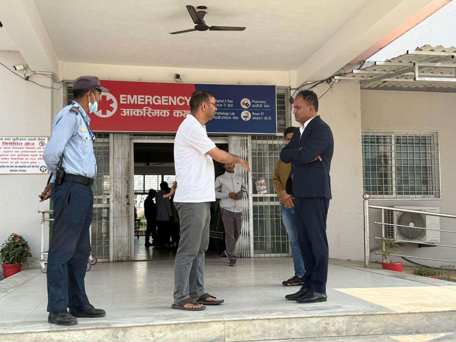 दोधारा चाँदनी (कञ्चनपुर), कञ्चनपुर प्रतिनिधिसभा सदस्य निर्वाचन क्षेत्र नं २ बाट निर्वाचित राष्ट्रिय स्वतन्त्र पार्टी (रास्वपा) का नेता दीपक बोहराले महाकाली प्रादेशिक अस्पताल निरीक्षण गरी सेवा–सुविधाबारे जानकारी लिनुभएको छ । आज निर्वाचित भएपछि उहाँ अस्पतालको सेवा सुविधाबारे जानकारी लिन अस्पताल पुग्नुभएको थियो । उहाँलाई अस्पतालका निमित्त मेडिकल सुररिटेन्डेन्ट डा अर्जुन भट्टसँग अस्पतालको अवस्था, सेवा सुविधा र समस्याबारे जानकारी दिनुभएको थियो ।