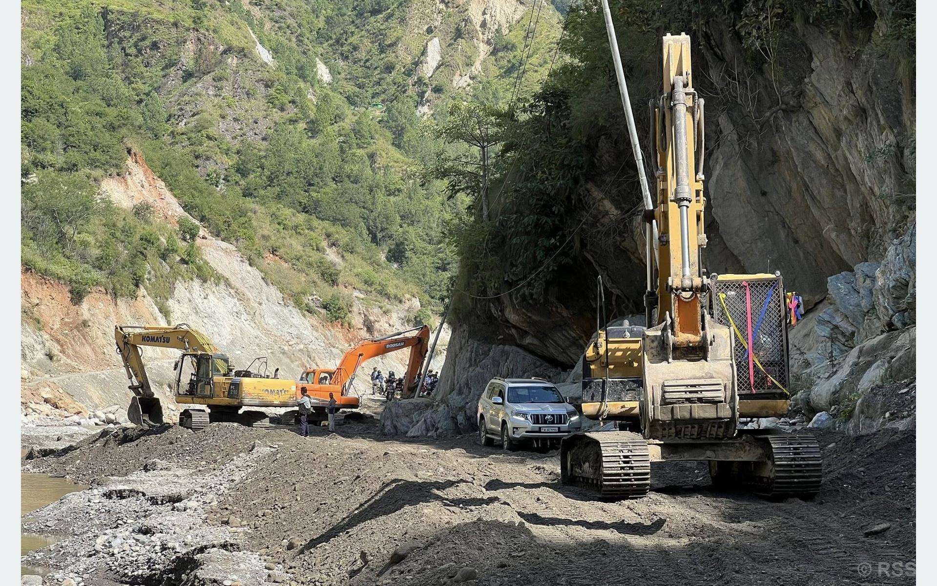 क्षति पु¥याएको विभिन्न स्थानमा ‘आरसिसी’ पर्खाल लगाउने काम भइरहेको छ भने चौकीडाँडामा खोलाबाट प्लम्प पर्खाल लगाउन तथा चारसयबेँसी र भकुण्डेबेँसीमा पनि ‘आरसिसी’ पर्खाल लगाउन सुरु गरिएको छ । यस्तै डालाबेँसी, मङ्गलटार खण्ड, चारसयबेँसीदेखि नार्के खण्डमा सडक चौडा बनाउने कामसमेत भइरहेको योगेशले बताउनुभयो ।