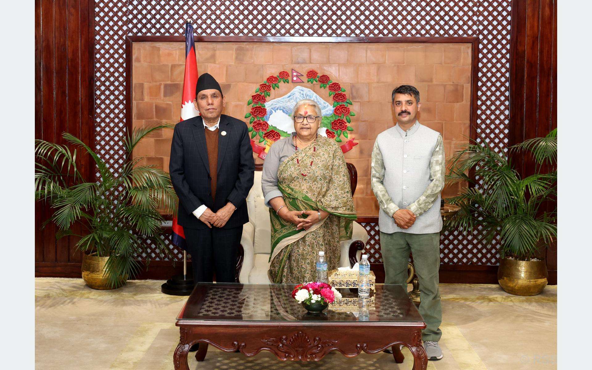 काठमाडौँ, प्रधानमन्त्री सुशीला कार्कीसँग राष्ट्रियसभाका अध्यक्ष नारायणप्रसाद दाहालले शिष्टाचार भेटवार्ता गर्नुभएको छ । प्रधानमन्त्रीको सरकारी निवास बालुवाटारमा भएको भेटमा निर्वाचनपछि समीक्षा, संसद् सञ्चालनलगायत विषयमा कुराकानी भएको प्रधानमन्त्रीका प्रेस सल्लाहकार रामबहादुर रावलले जानकारी दिनुभयो ।राष्ट्रिय समाचार समिति (रासस)