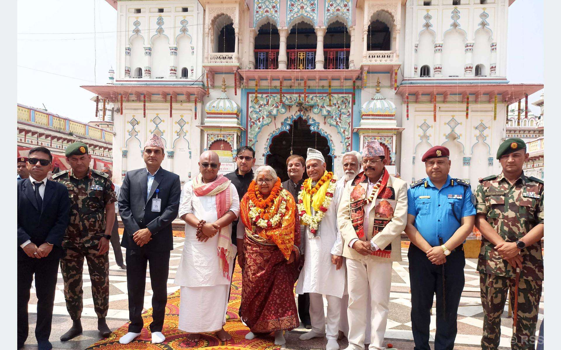 जनकपुरधाम, प्रधानमन्त्री सुशीला कार्कीले जनकपुरधामस्थित प्रसिद्ध धार्मिकस्थल जानकी मन्दिरमा दर्शन तथा पूजाआराधना गर्नुभएको छ । आज बिहान नेपाली सेनाको हेलिकप्टरमार्फत यहाँ आउनुभएकी प्रधानमन्त्री कार्कीले प्रसिद्ध जानकी मन्दिरमा विशेष पूजाअर्चना गर्नुभएको हो ।