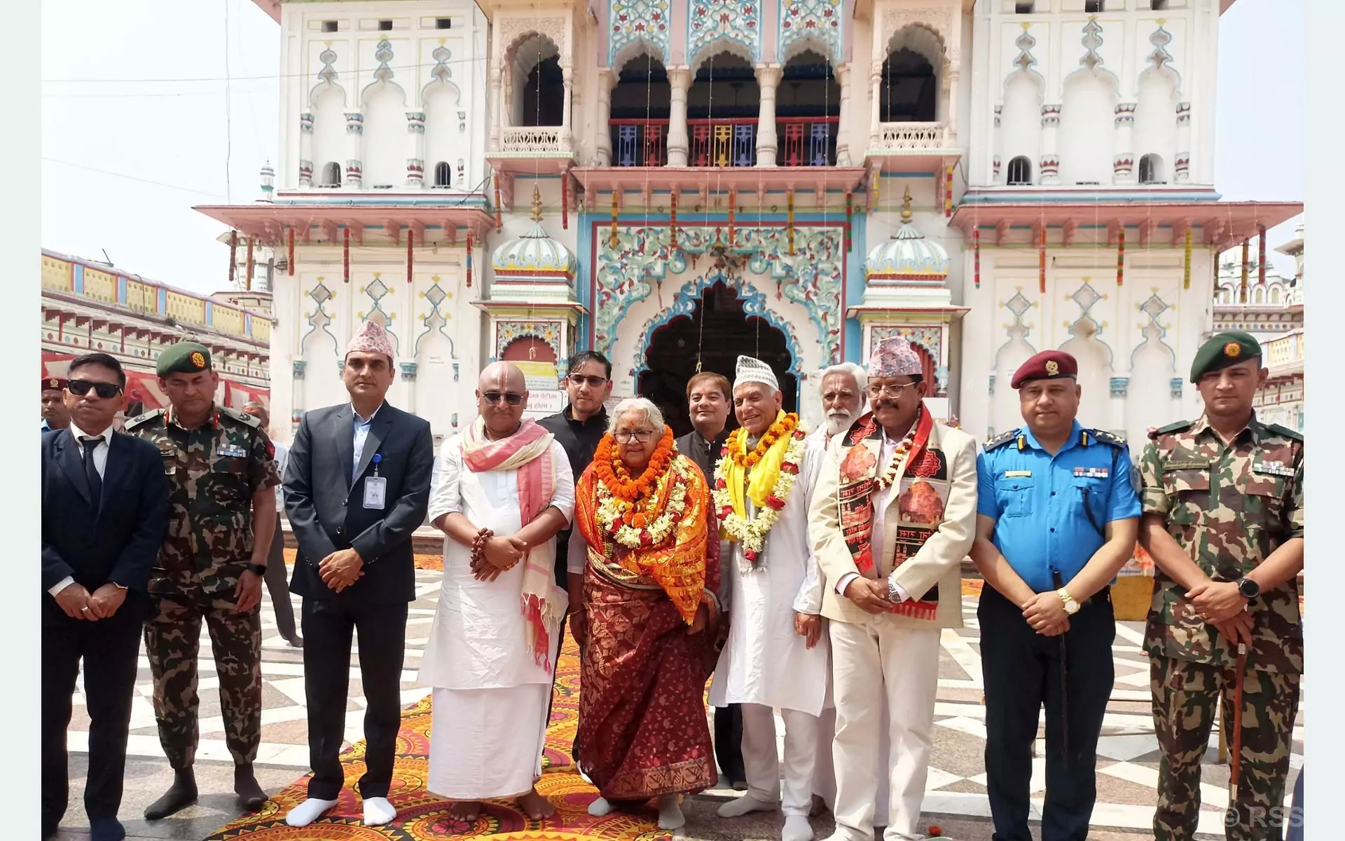 यसअघि जनकपुरधाम जनकपुरविमानस्थलमा मधेस प्रदेशका गृह, सञ्चार तथा कानुनमन्त्री फकिरा महतो, प्रमुख सचिवसहित मधेस प्रदेश तथा जिल्लास्थित सुरक्षा निकायका प्रमुख तथा धनुषाका प्रमुख जिल्ला अधिकारी पे्रमप्रसाद लुइँटेललगायतले स्वागत गर्नुभएको थियो । राष्ट्रिय समाचार समिति (रासस)
