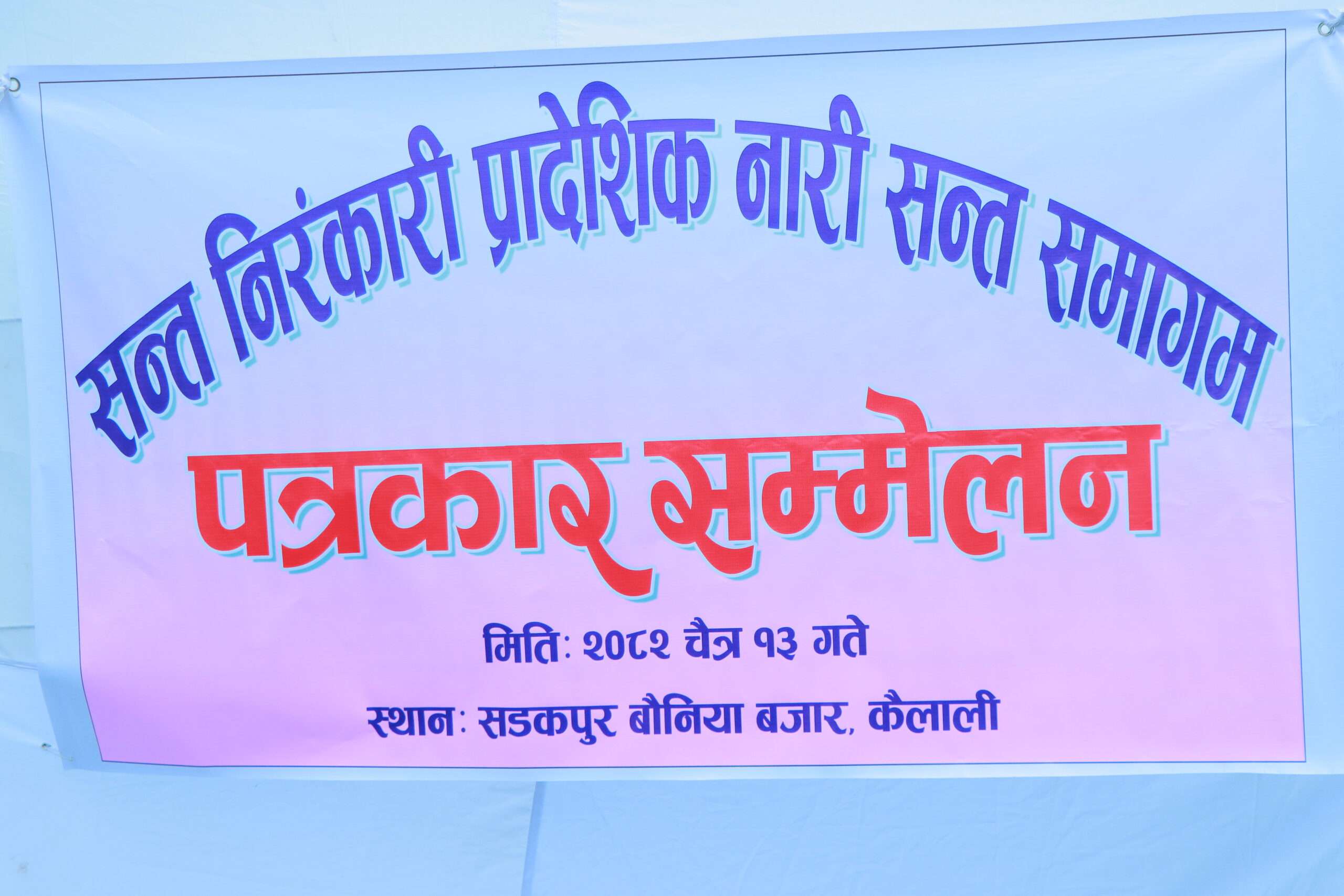घोडाघोडी (कैलाली), अध्यात्म र समाजसेवामा क्रियाशील सन्त निरङ्कारी मिसनले नेपालमा पहिलो पटक प्रादेशिक नारी सङ्घ समागम आयोजना गर्ने भएको छ । नारी शक्तिमार्फत समाजमा शान्ति र एकताको सन्देश फैलाउने उद्देश्यका साथ सुदूरपश्चिम र मधेस प्रदेशमा यही चैत १३ गते तथा कर्णाली र कोशी प्रदेशमा यही चैत १४ गते नारी सन्त समागम आयोजना गरिने कैलालीको बौनियाँमा आज आयोजित पत्रकार सम्मेलनमार्फत जानकारी दिइएको हो ।
