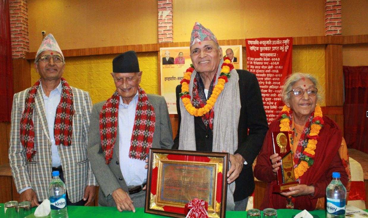 काठमाडौँ, विसं २०८२ को ‘दण्डपाणि–नन्दकुमारी अज्र्याल स्मृति राष्ट्रिय पुरस्कार’ प्राडा जयराज आचार्यलाई अर्पण गरिएको छ । अन्तरराष्ट्रिय सम्बन्ध, परराष्ट्र तथा कूटनीतिलगायत नेपाली, अङ्ग्रेजी र संस्कृत वाङ्मयमा योगदान पुरÞ्याए वापत उहाँलाई नगद रु ५० हजार सहित सो पुरस्कार प्रदान गरिएको हो ।