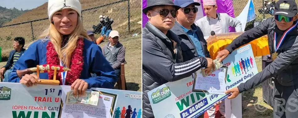 खोटाङ, ‘मुन्दुम ट्रेल अल्ट्रा रेस–२०८२’को उपाधि महिलातर्फ खोटाङकी निर्मला राई र पुरुषतर्फ ओखलढुङ्गाका विनोद थापामगरले जित्नुभएको छ । महिला/पुरुष ६० किलोमिटर खुला अल्ट्रा रेस प्रतियोगितामा निर्मलाले आठ घण्टा २० मिनेट तथा विनोद छ घण्टा ५० मिनेटमा दूरी पार गर्दै उपाधि जित्नुभएको हो ।