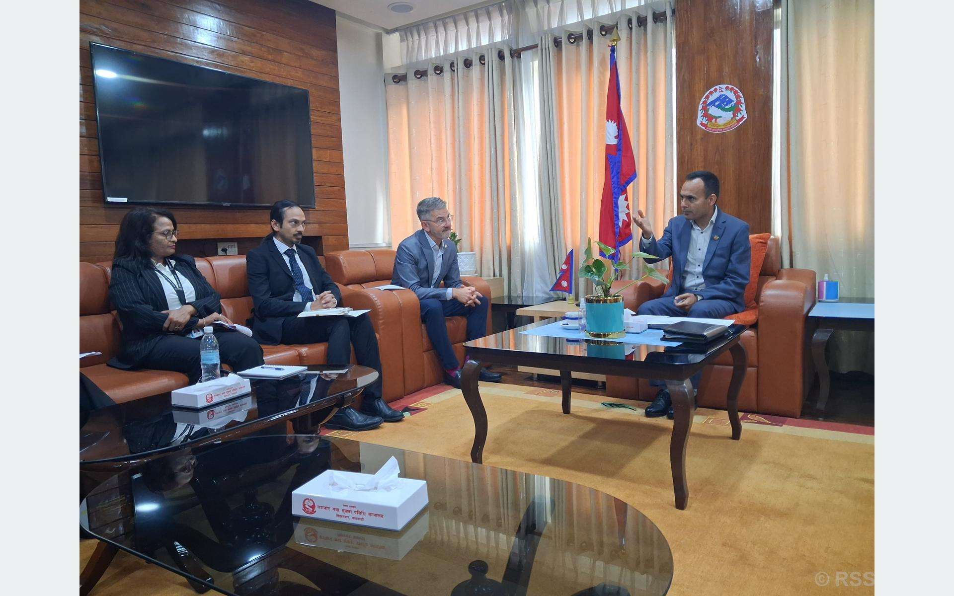 काठमाडौँ, सञ्चार तथा सूचना प्रविधिमन्त्री डा. विक्रम तिमिल्सिनासँग नेपालका लागि विश्व बैंकका देशीय निर्देशक डेभिड सिस्लेन नेतृत्वको प्रतिनिधिमण्डलले उहाँको कार्यकक्षमा शिष्टाचार भेट गरेको छ ।परराष्ट्र मन्त्रालयका अधिकारीसमेतको उपस्थितिमा भएको भेटमाविश्व बैंकको सहयोगमा कार्यान्वयन हुने ‘नेपाल डिजिटल ट्रान्सफरमेसन प्रजेक्ट’, मुलुकको सूचना प्रविधि क्षेत्रको विकासका लागि पहुँच विस्तार, ‘डेटा’ व्यवस्थापन, डिजिटल रूपान्तरण तथा शासकीय सुधारबारे छलफल भएको सञ्चार तथा सूचना प्रविधि मन्त्रालयले जनाएको छ ।