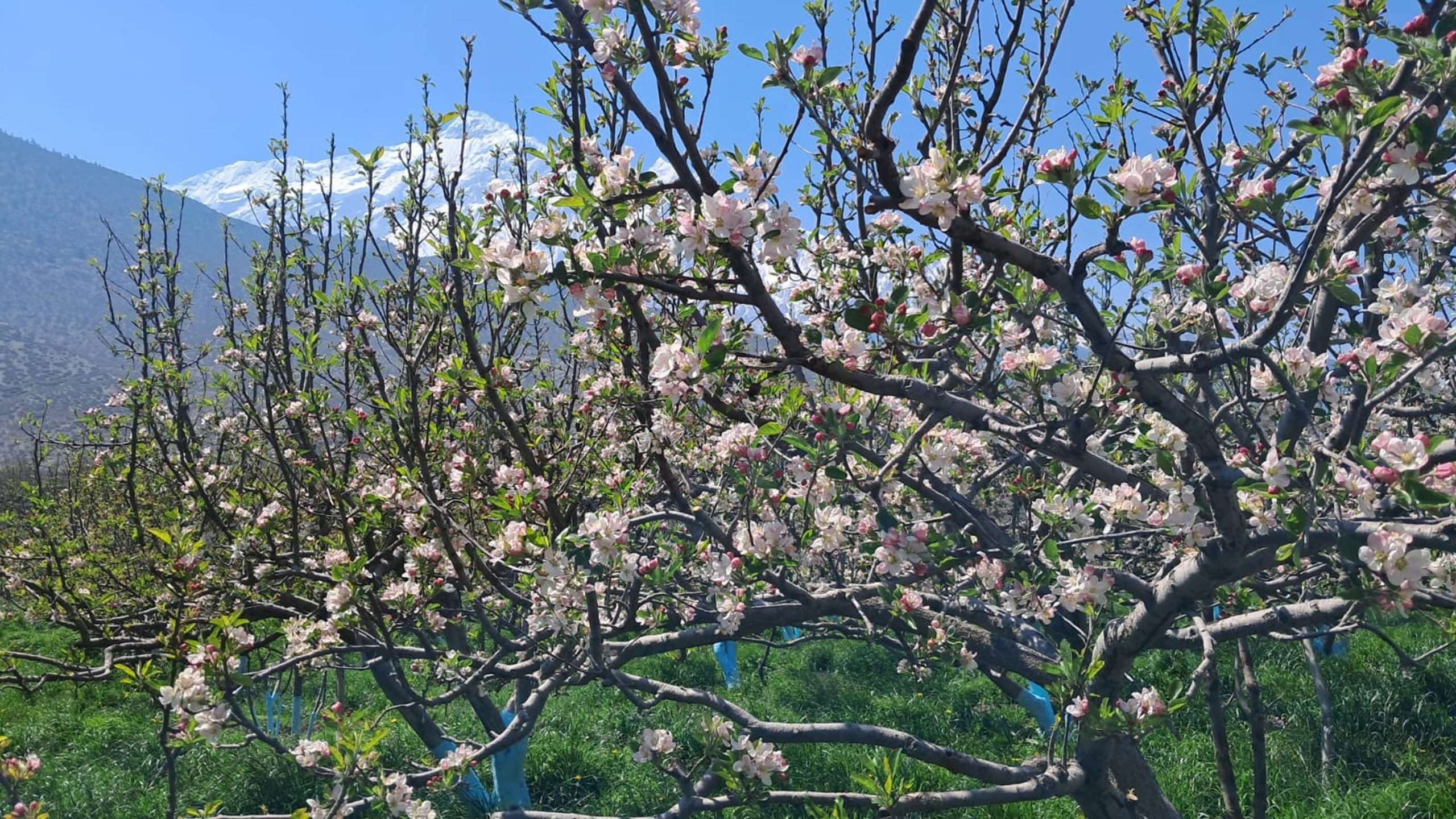 स्याउ बगैँचामा फूल फुलेर सेताम्मे
