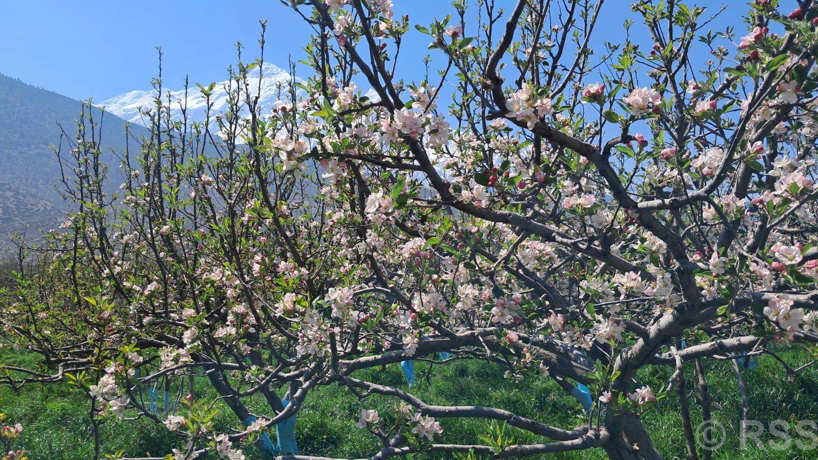 घरपझोङ–४ जोमसोमका किसान भूपेन्द्र शेरचनले स्याउको फूल फुल्ने बेलामा मौसमले पूर्ण रुपमा साथ दिनुपर्ने बताउनुभयो । स्याउ बोटमा परागसेचन हुने समयमा वर्षा हुने र मौसम ढुुम्म भएमा स्याउ बोटमा ढुसी पलाएर स्याउको गुणस्तरमा असर पु¥याउने किसान उहाँको भनाइ छ । स्याउ बोटमा अझै पूर्ण रुपमा फूल फुल्न एक साता समय लाग्ने उहाँको भनाइ छ ।