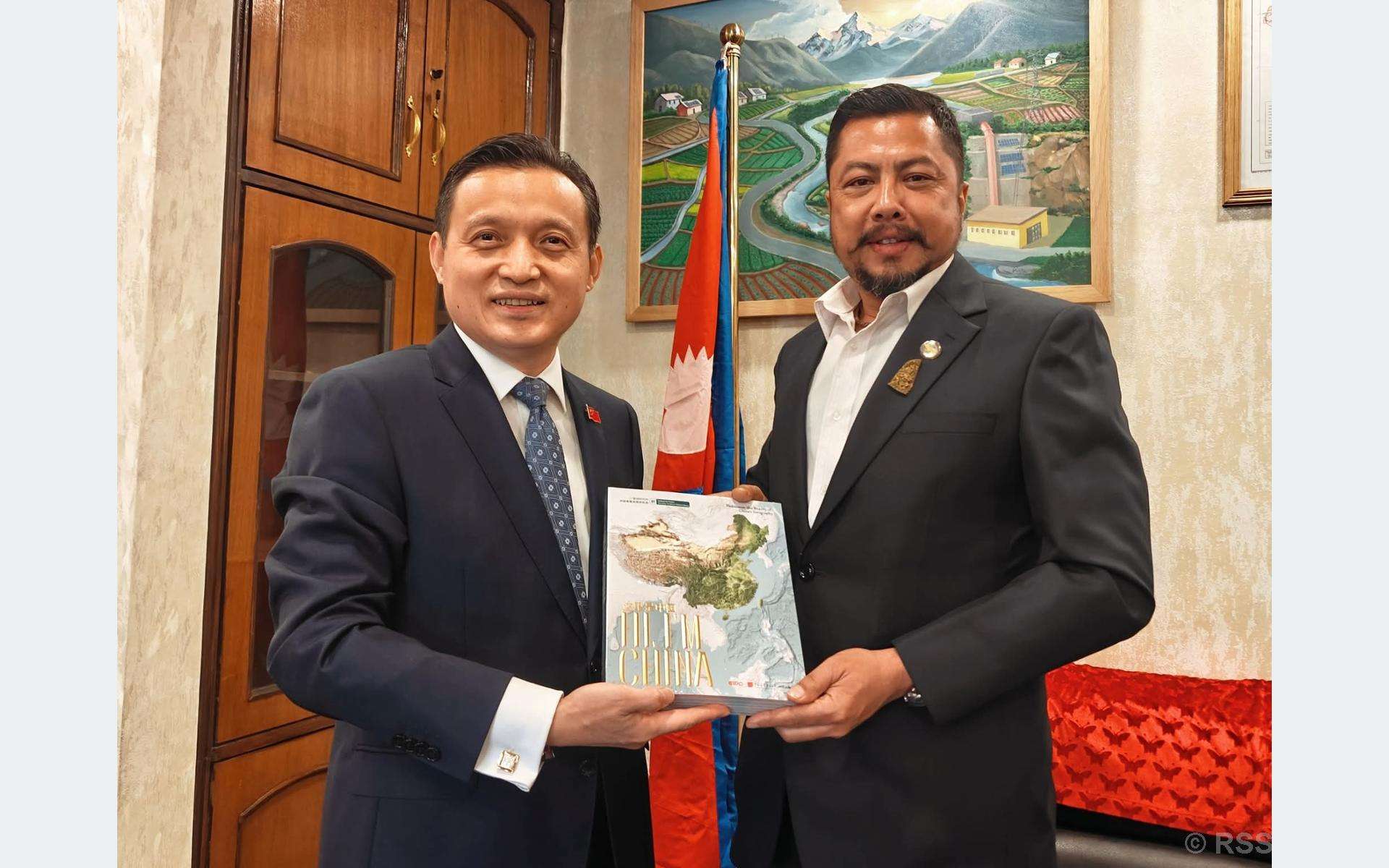 काठमाडौँ, ऊर्जा, जलस्रोत तथा सिँचाइमन्त्री विराजभक्त श्रेष्ठसँग नेपालका लागि चीनका राजदूत चाङ माओमिङ र भारतका राजदूत नवीन श्रीवास्तवले शुक्रबार बेग्लाबेग्लै भेट गर्नुभएको छ । चिनियाँ राजदूतसँगको भेटमा नेपाल र चीनबीच आपसी हितमा आधारित व्यावहारिक सहकार्यलाई अझ सुदृढ बनाउने विषयमा विस्तृत छलफल भएको यहाँस्थित चिनियाँ राजदूतावासले जनाएको छ ।