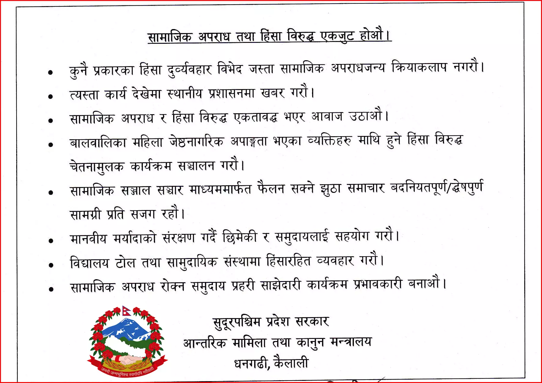कैलाली । कैलाली जिल्लाको धनगढी उपमहानगरपालिका–४, ओम शान्ति टोल निवासी ६४ वर्षीय कर्ण जित साउँद सकुशल घर फर्किएका छन्।   राष्ट्रिय वाणिज्य बैंकका पूर्व म्यानेजर साउँद वैशाख ५ गते बिहान करिब ६ बजे घरबाट निस्किएपछि सम्पर्कविहीन भएका थिए। उनको खोजीका लागि परिवारले सर्वसाधारण तथा सम्बन्धित निकायसँग...