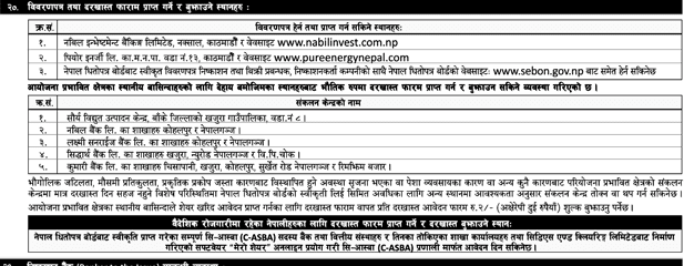 यस्तै, लक्ष्मी सनराइज बैंकको कोहलपुर र नेपालगन्ज शाखा, सिद्धार्थ बैंकको खजुरा, न्यूरोड नेपालगञ्ज, र वीपी चोक तथा कुमारी बैंकको चिसापानी, खजुरा, कोहलपुर, सुर्खेतरोड नेपालगन्ज र रिमझिम बजारको शाखाबाट आवेदन दिन सक्नेछन् । वैदेशिक रोजगारीमा रहेका नेपालीहरुले भने सी–आस्वा प्राप्त बैंक तथा वित्तीय संस्था तथा मेरो सेयरमार्फत सेयर भर्न सकिनेछ ।