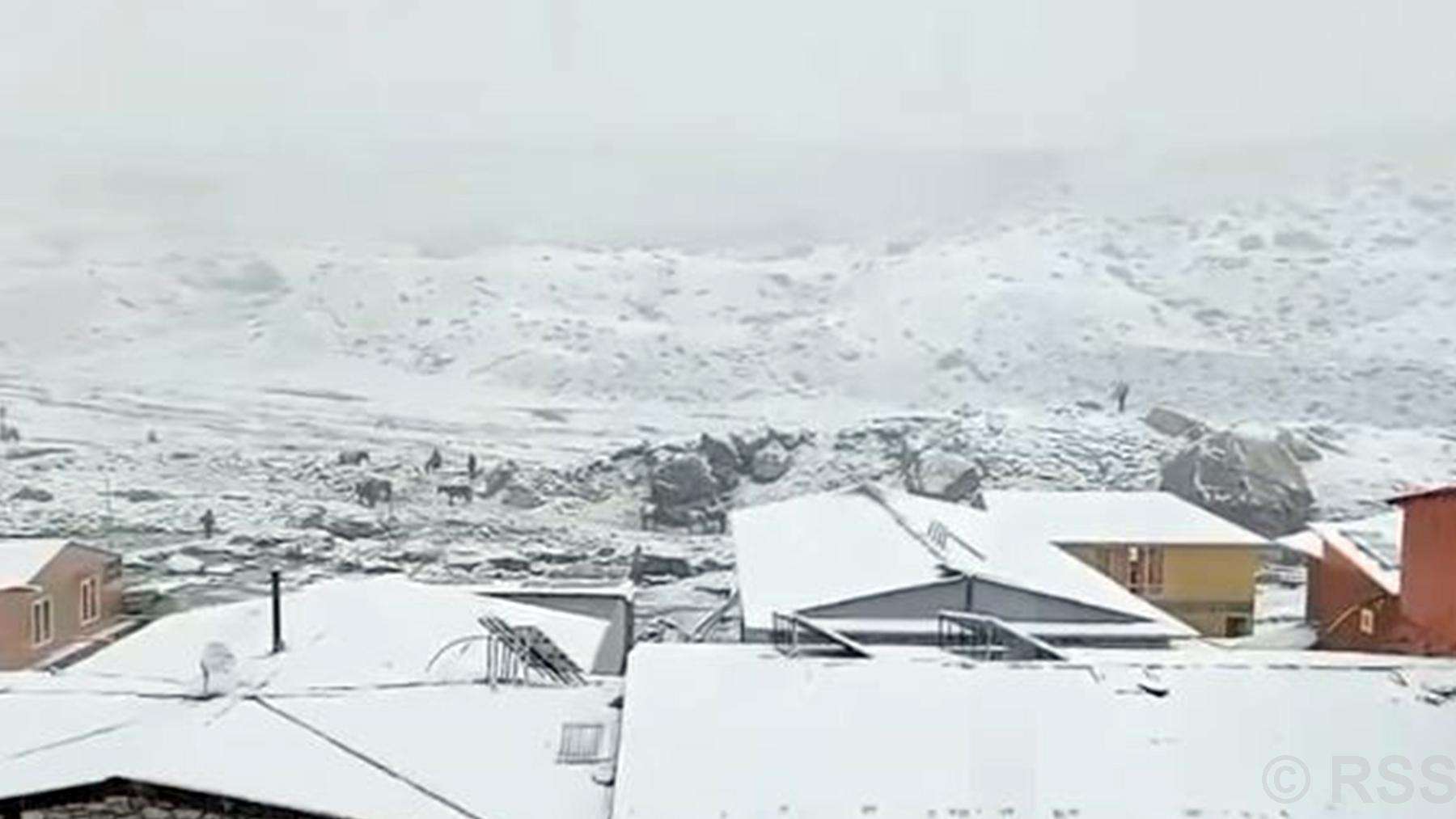 सोलुखुम्बु, सगरमाथा क्षेत्रमा आज बिहानैदेखि बाक्लो हिमपात भएको छ । खुम्बु पासाङल्हामु गाउँपालिकाको दिङ्बोचेभन्दा माथिल्लो क्षेत्रमा हिउँ परिरहेको छभने नाम्चेबजार र आसपासका तल्लो क्षेत्रमा वर्षा भइरहेको छ । सगरमाथा प्रदूषण नियन्त्रण समितिका अध्यक्ष लामाकाजी शेर्पाले भन्नुभयो, “दिङ्बोचेभन्दा माथि बाक्लो हिउँ परेको छ, तल्लो क्षेत्रमा वर्षा भइरहेको छ, पर्यटकहरू सबै होटलभित्रै छन् । बाहिर निस्कन सम्भव छैन ।”